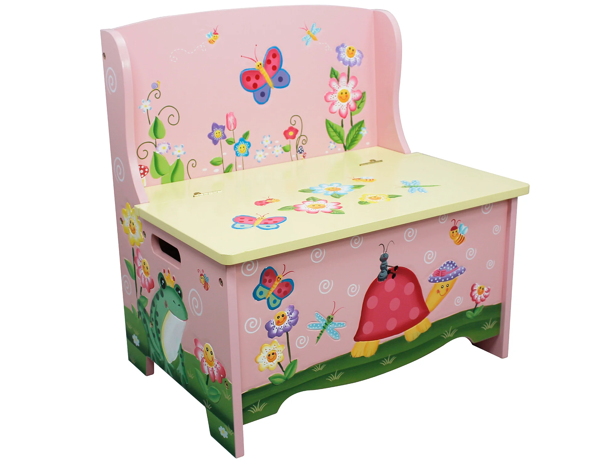 Banc de rangement enfant Magic Garden coffre à jouets bois fille bébé TD-11644A