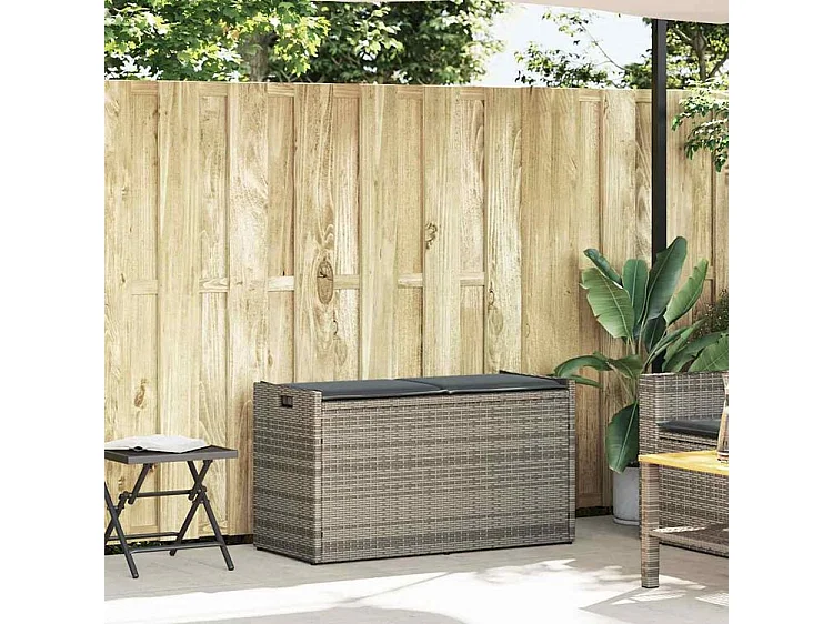 Banc de rangement extérieur coussin gris 100cm résine tressée