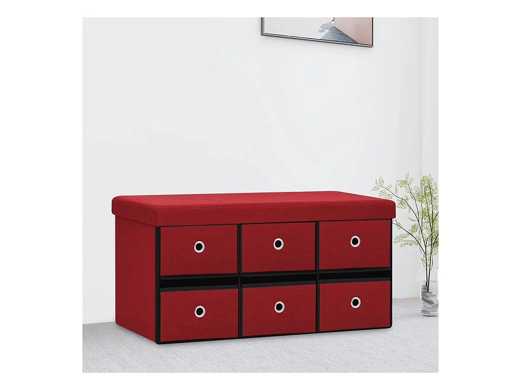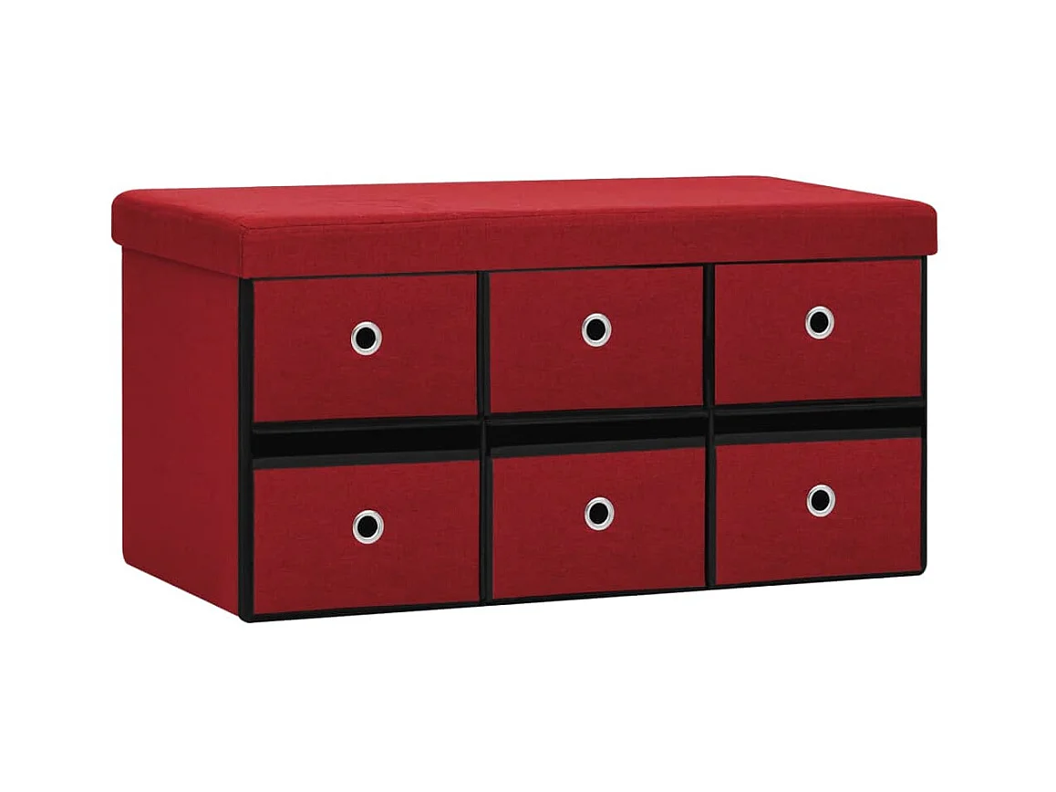 Banc de rangement pliable Rouge bordeaux Faux lin