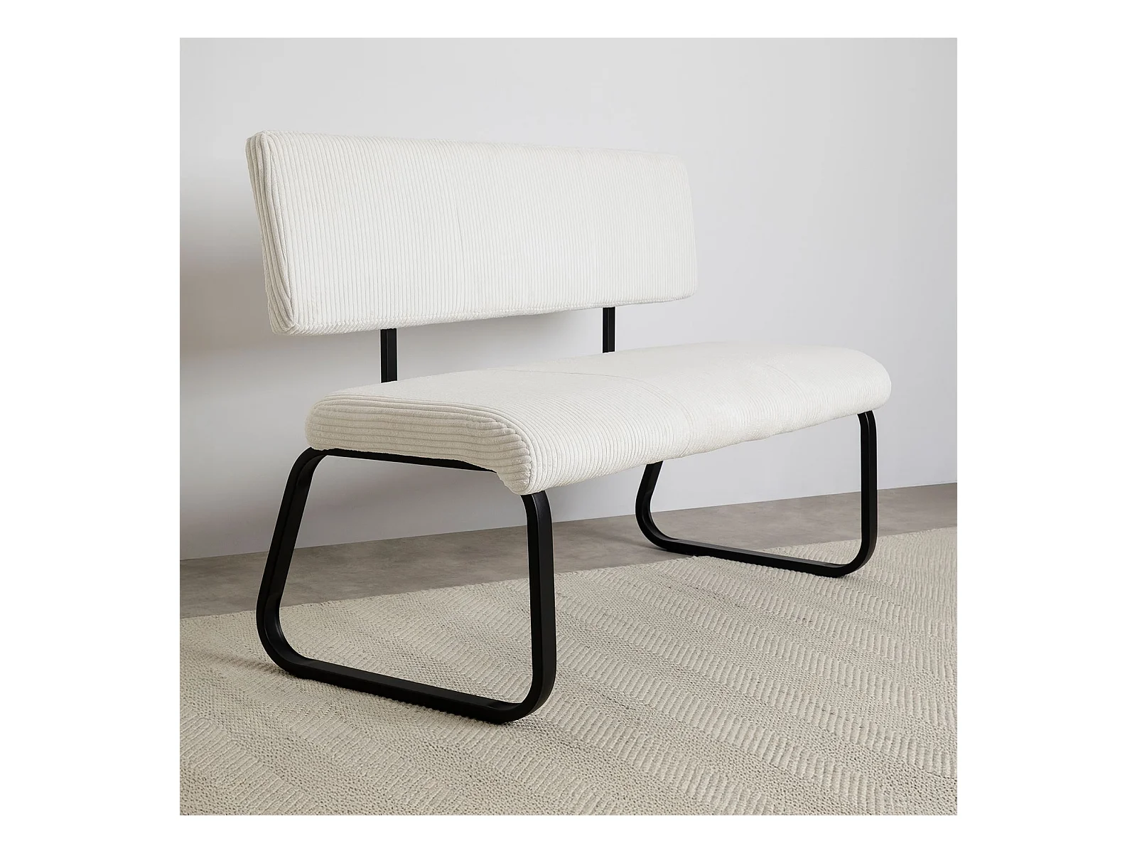 Banc de salle à manger MATESE L 135 cm en velours côtelé blanc avec dossier structure métal, 3 places, assise rembourrée
