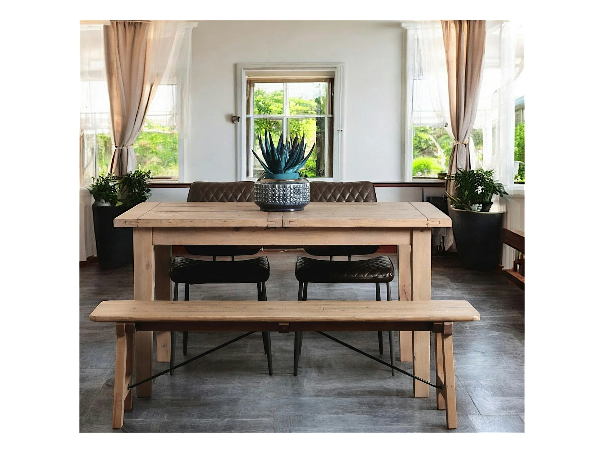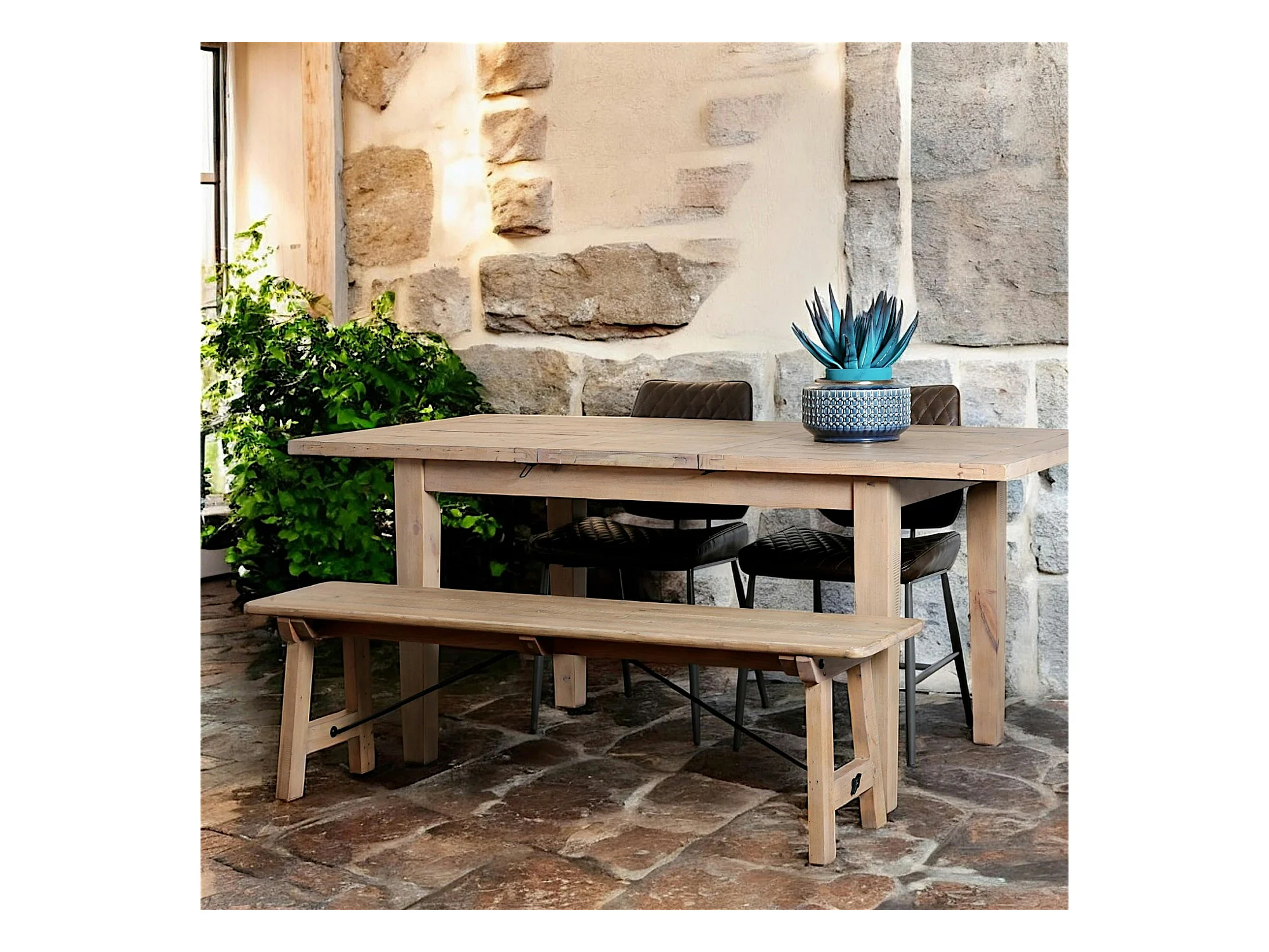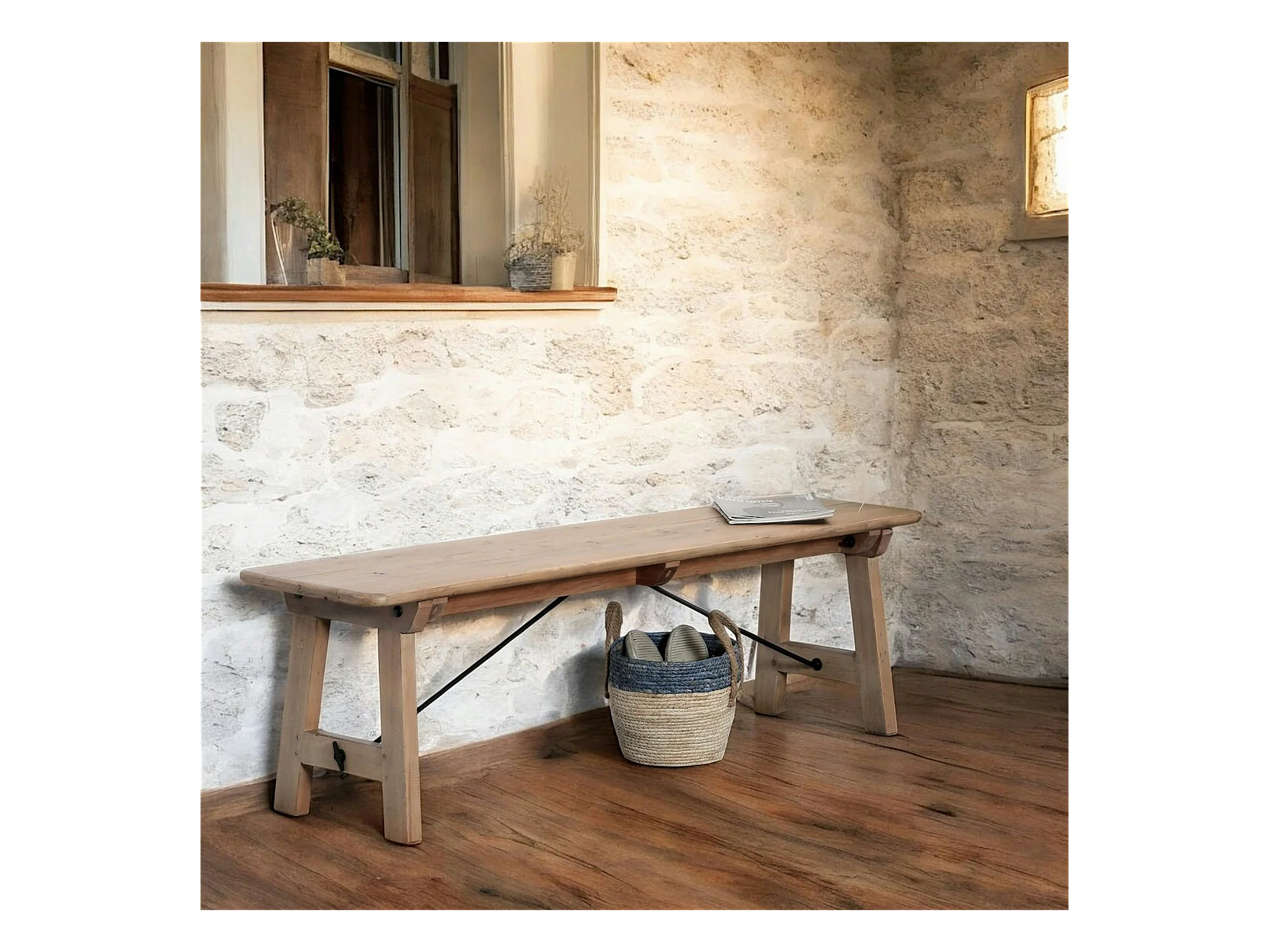 Banc de table bois recyclé clair 150 cm SALERNE