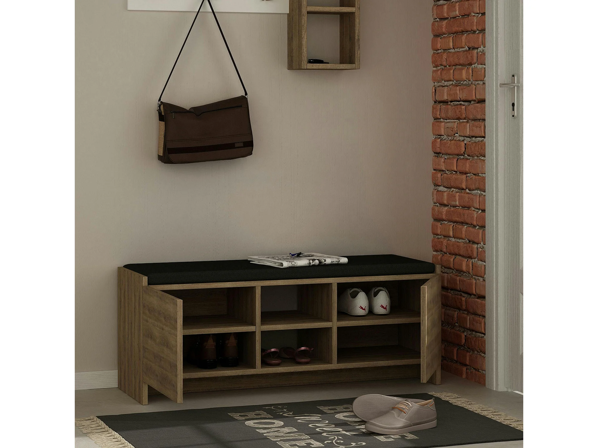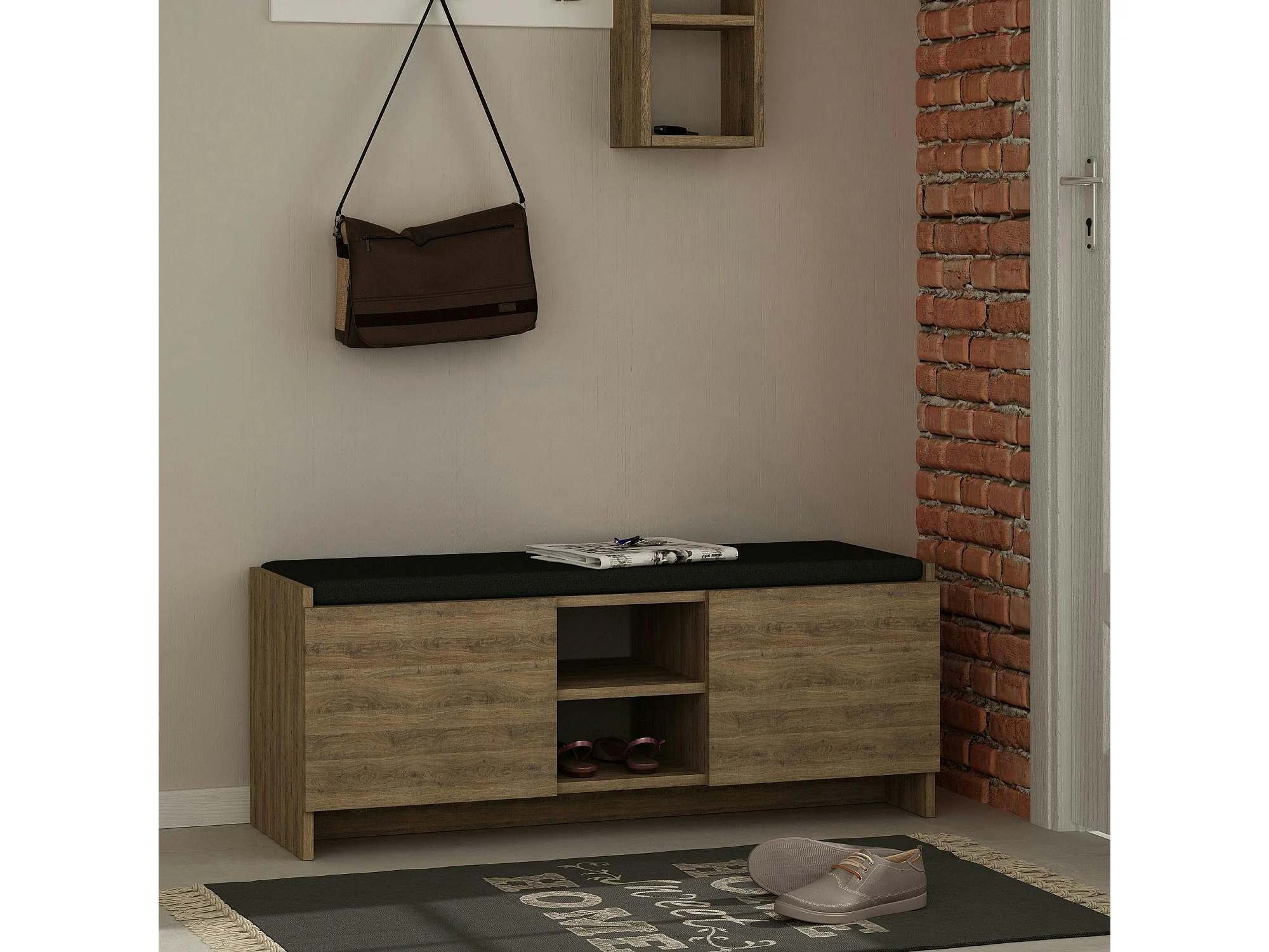 Banc d'entrée effet chêne avec rangement chaussures MARFA