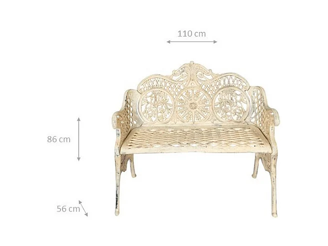 BISCOTTINI Banc – Fer Forgé Finition Antique – Extérieur – Banc de Jardin - Chaise ou Banc en Métal - Balcon - Terrasse - 110x55x88cm