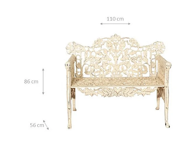 BISCOTTINI Banc – Fer Forgé Finition Antique – Extérieur – Banc de Jardin - Chaise ou Banc en Métal - Balcon - Terrasse - 110x56x86cm