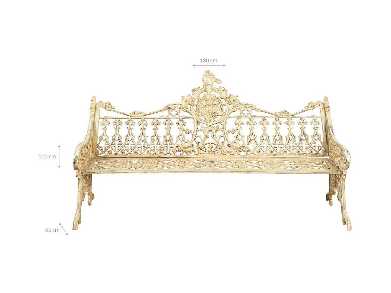 BISCOTTINI Banc – Fer Forgé Finition Antique – Extérieur – Banc de Jardin - Chaise ou Banc en Métal - Balcon - Terrasse – 180 x 65 x 100 cm.