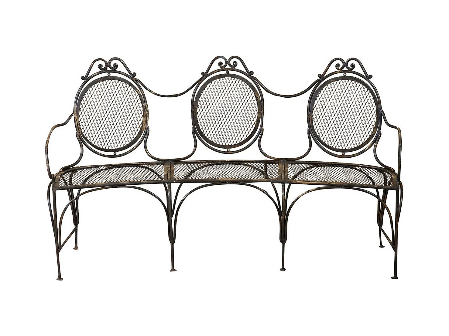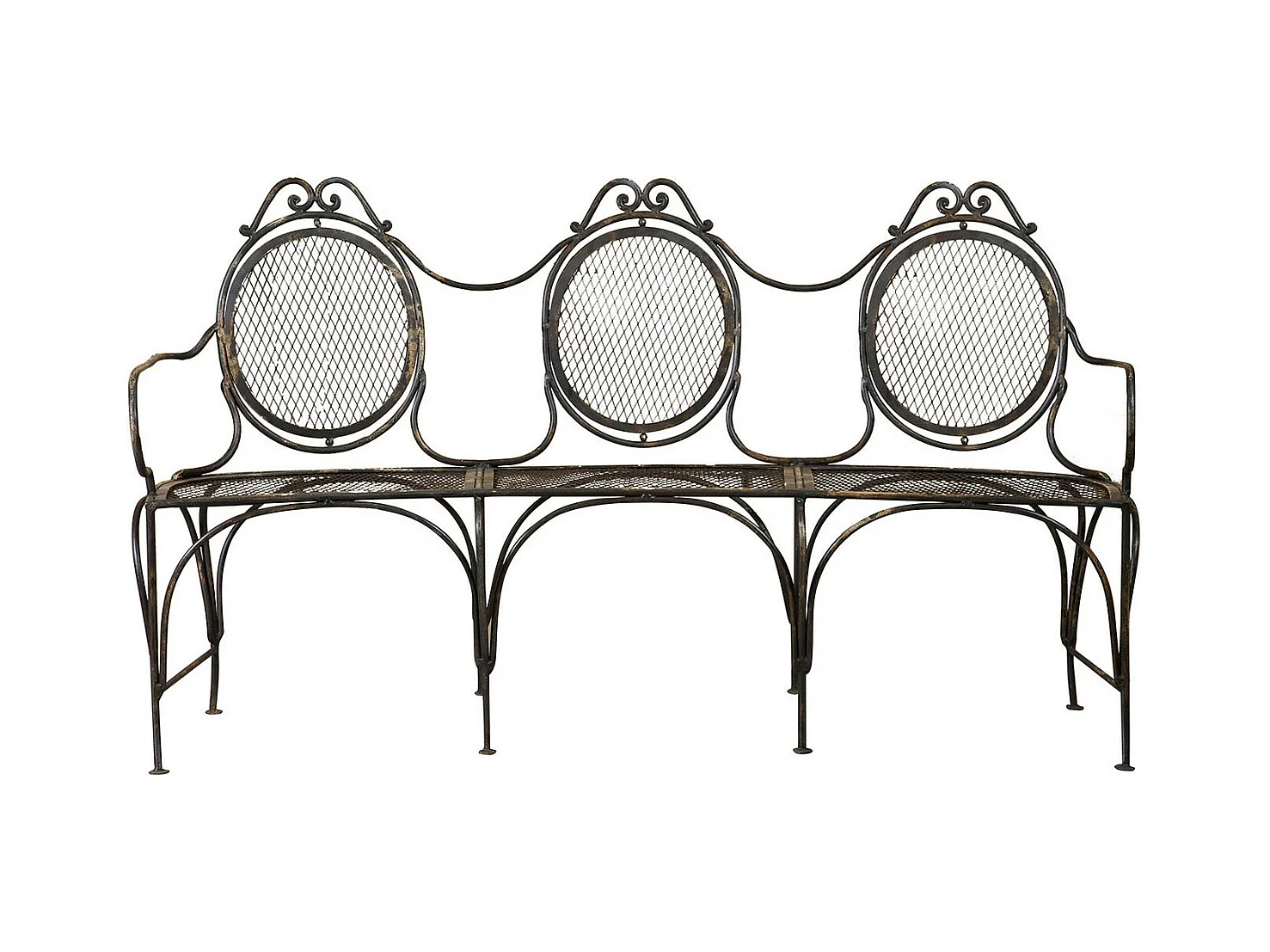 BISCOTTINI Banc – Fer Forgé Finition Noir Antique – Extérieur – Banc de Jardin - Chaise ou Banc en Métal - Balcon - Terrasse – 176x58x102 cm