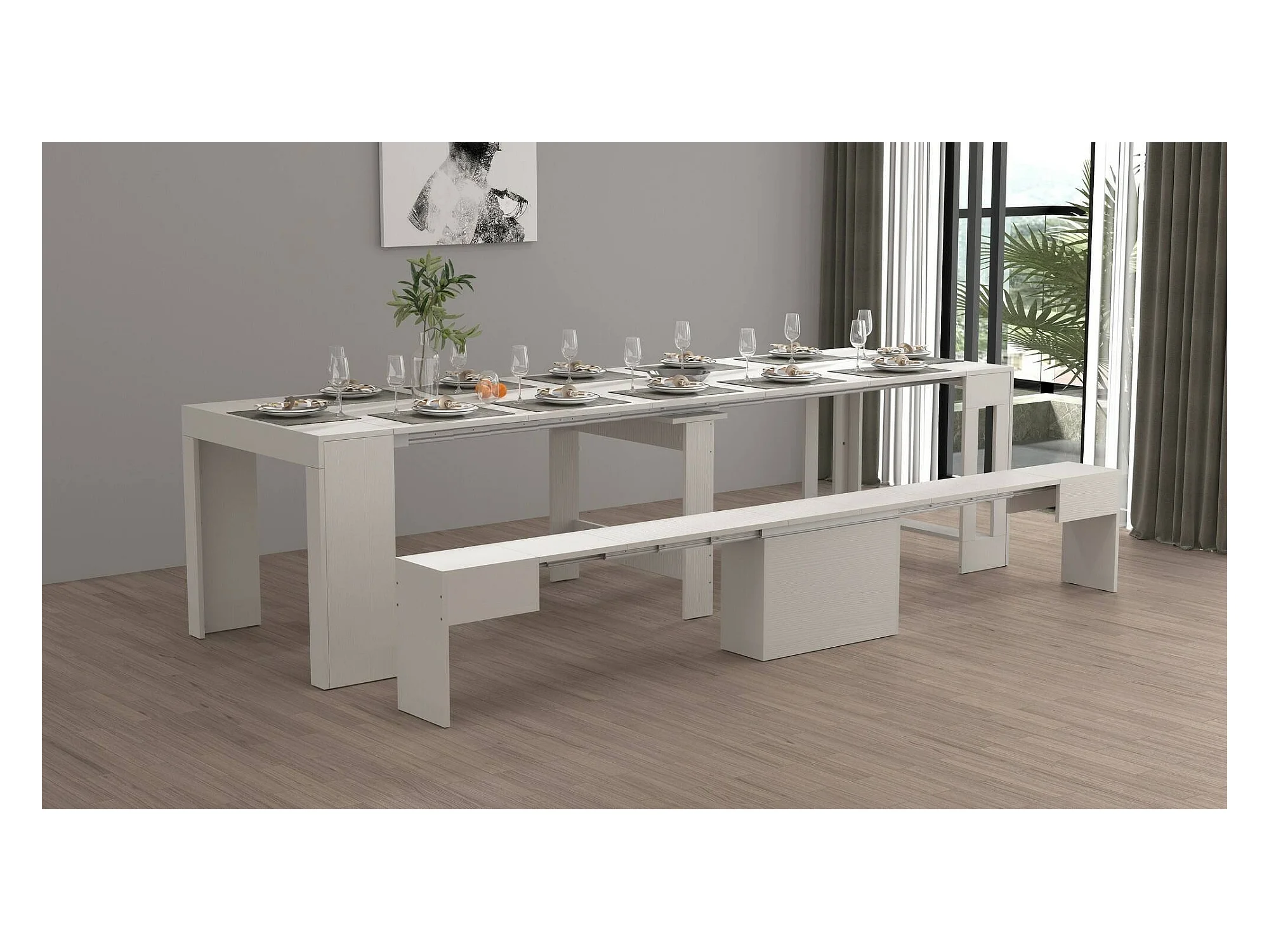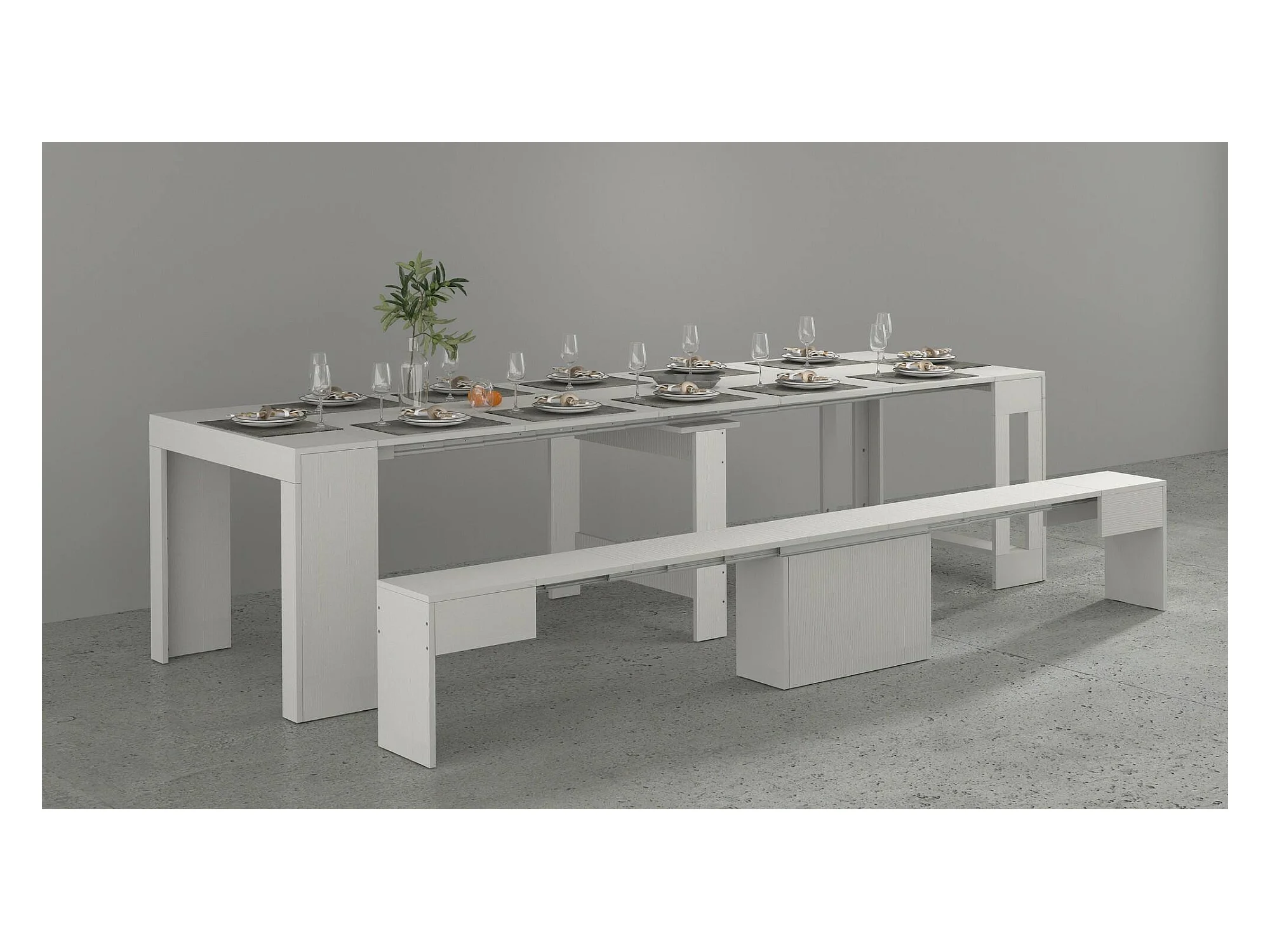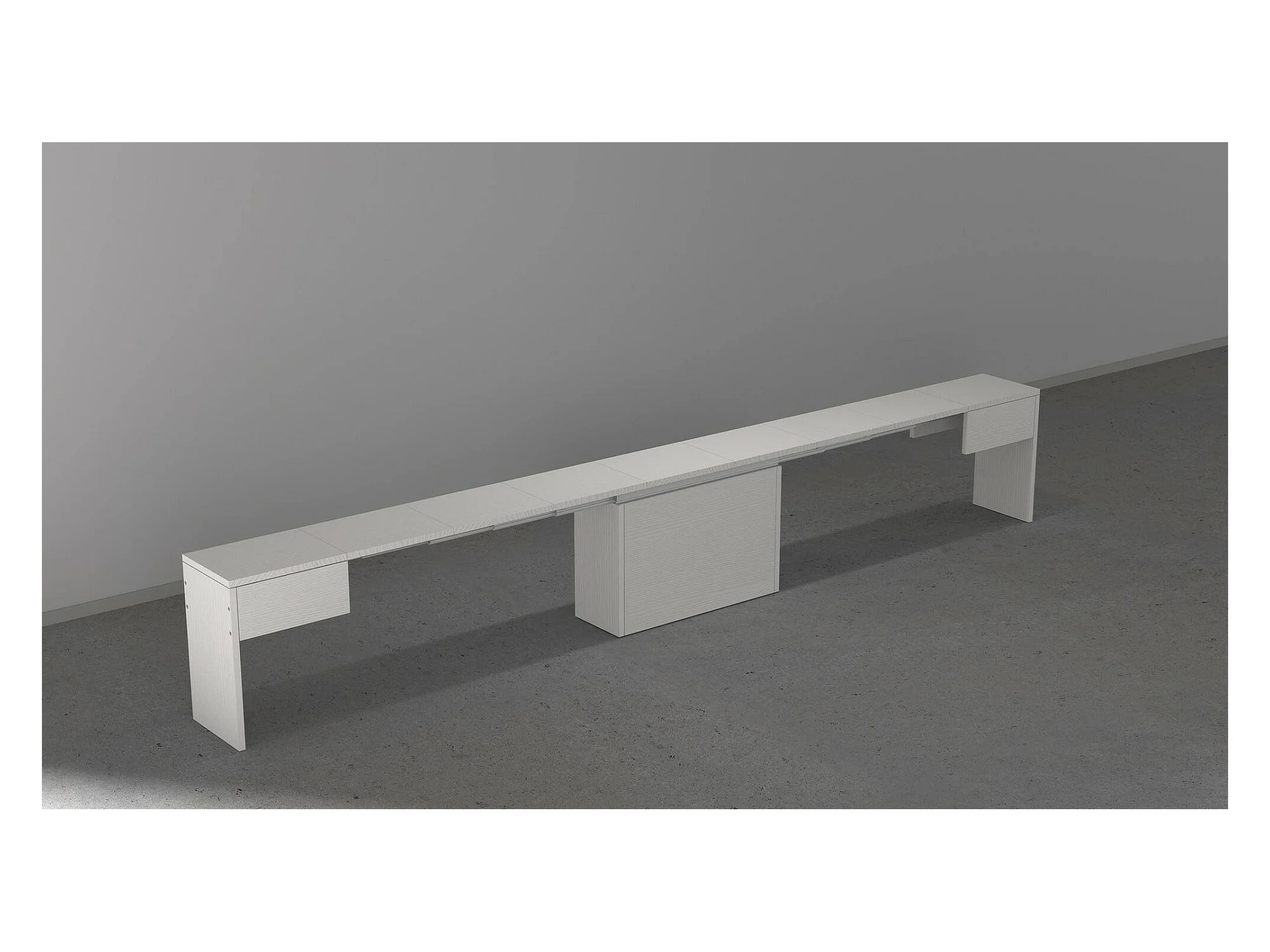 Banc Dollocol, Siège pour table à manger, Banc simple extensible, 290x25h45 cm, Blanc
