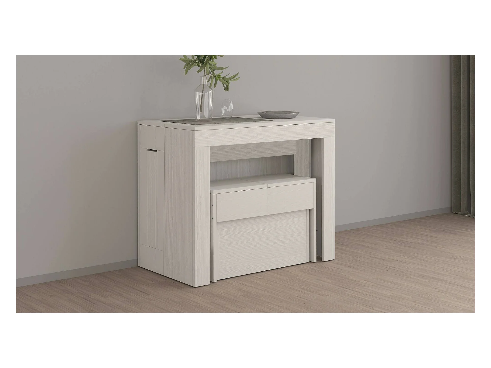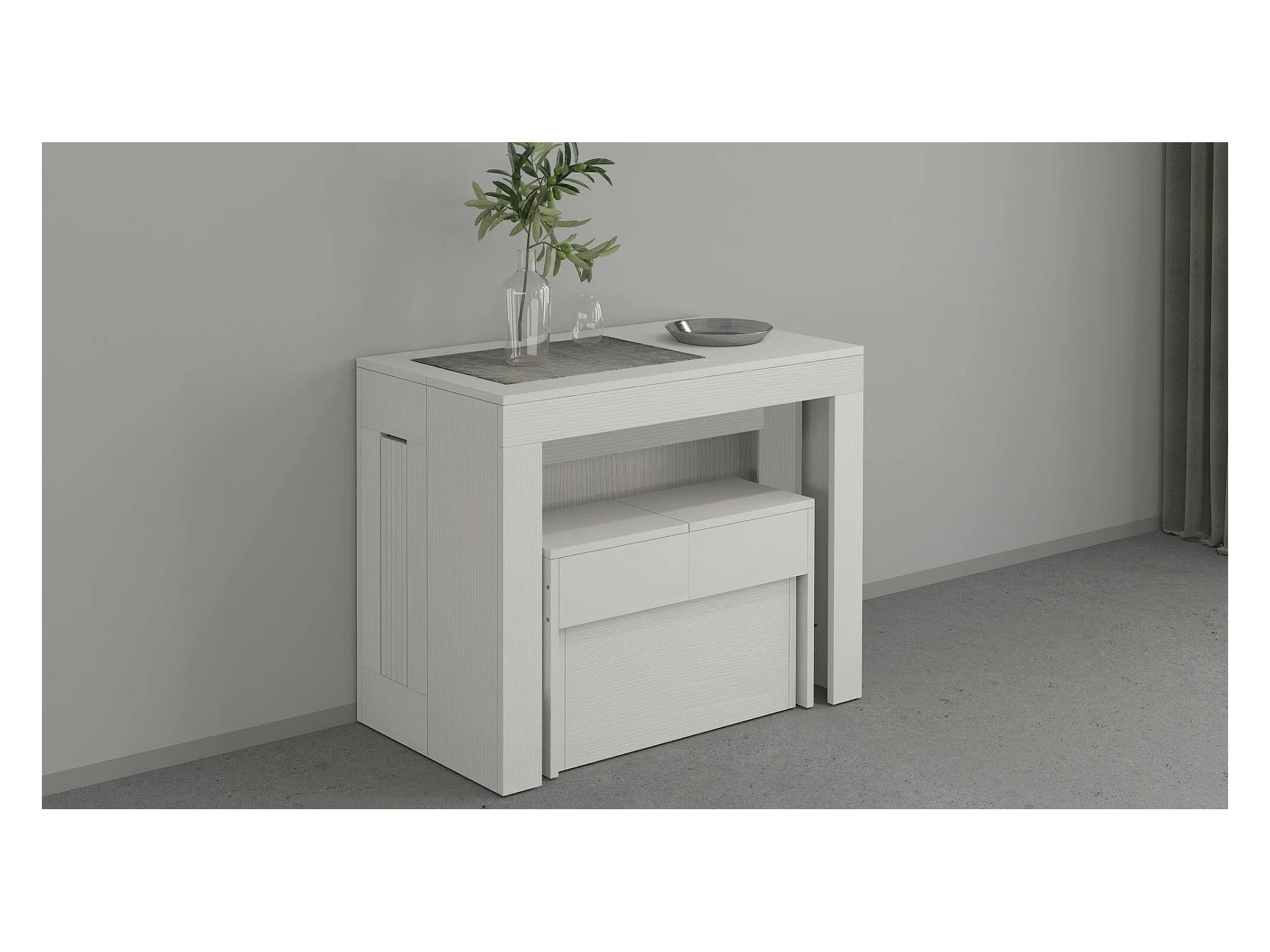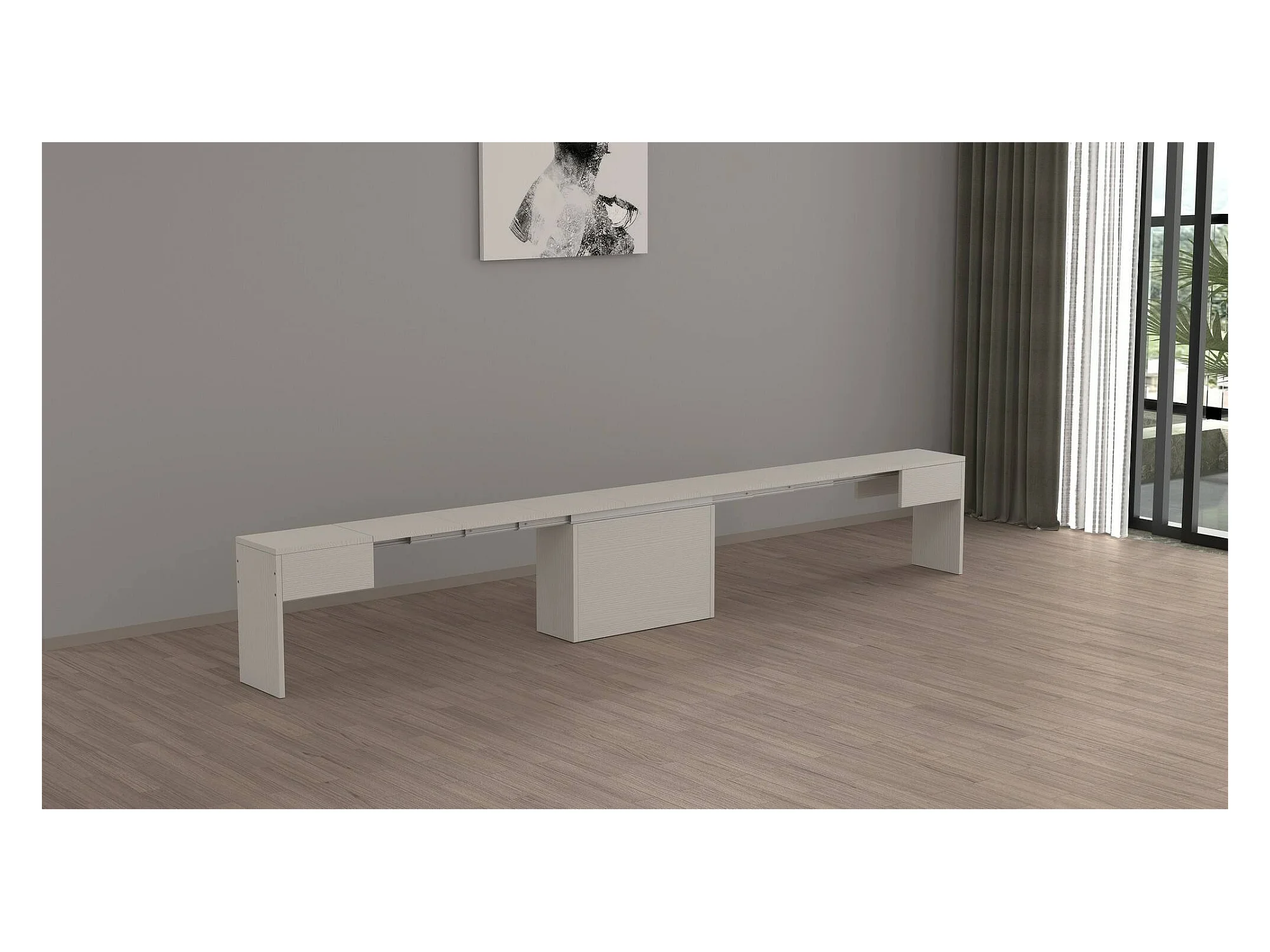 Banc Dollocol, Siège pour table à manger, Banc simple extensible, 290x25h45 cm, Blanc