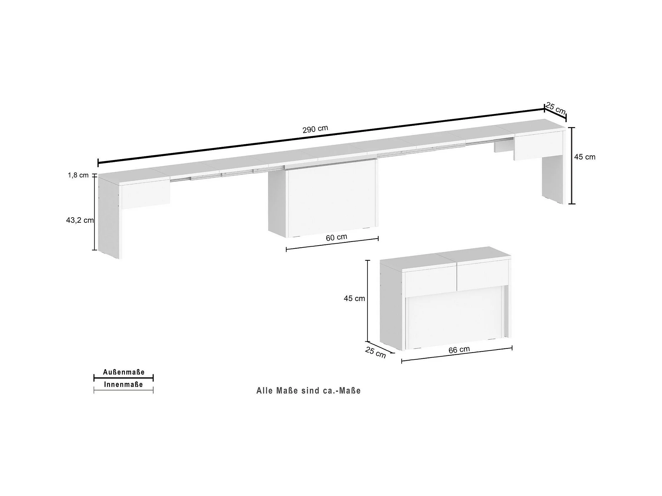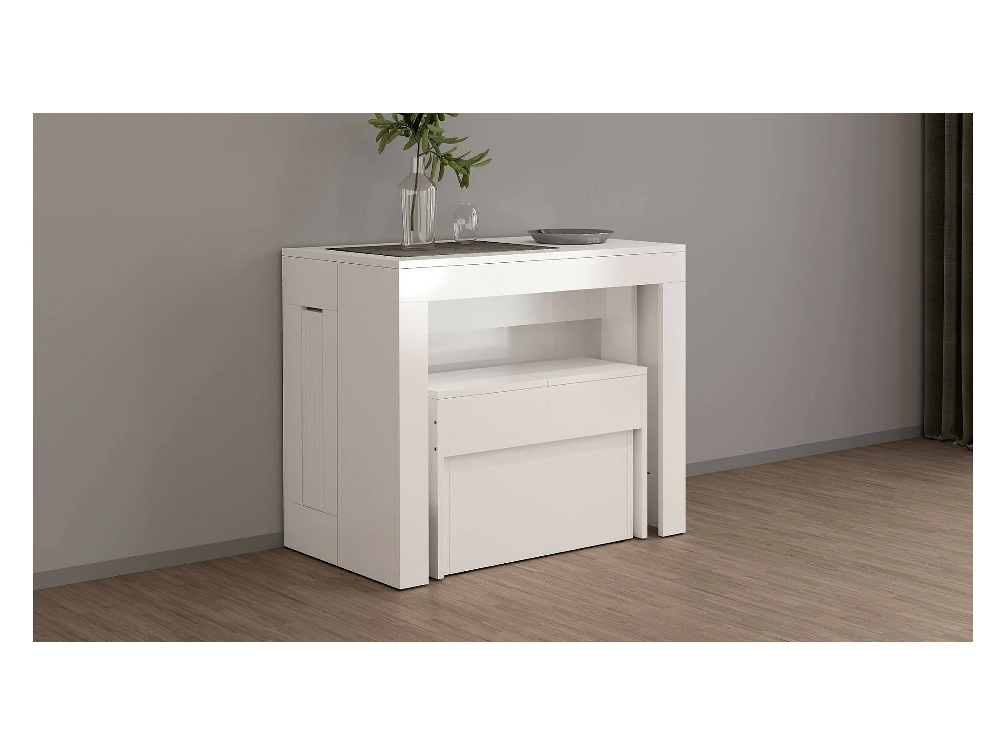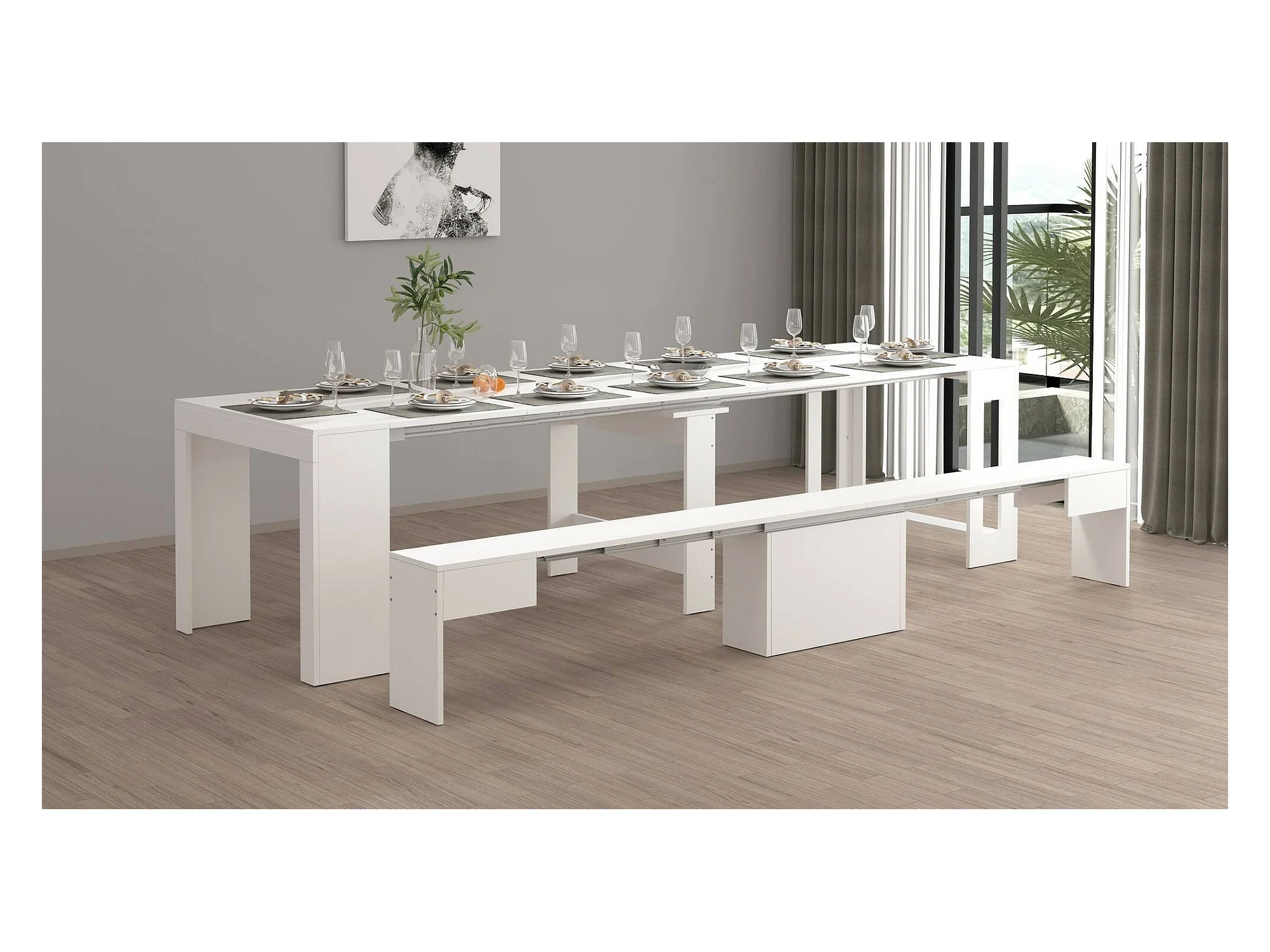 Banc Dollocol, Siège pour table à manger, Banc simple extensible, 290x25h45 cm, Blanc brillant