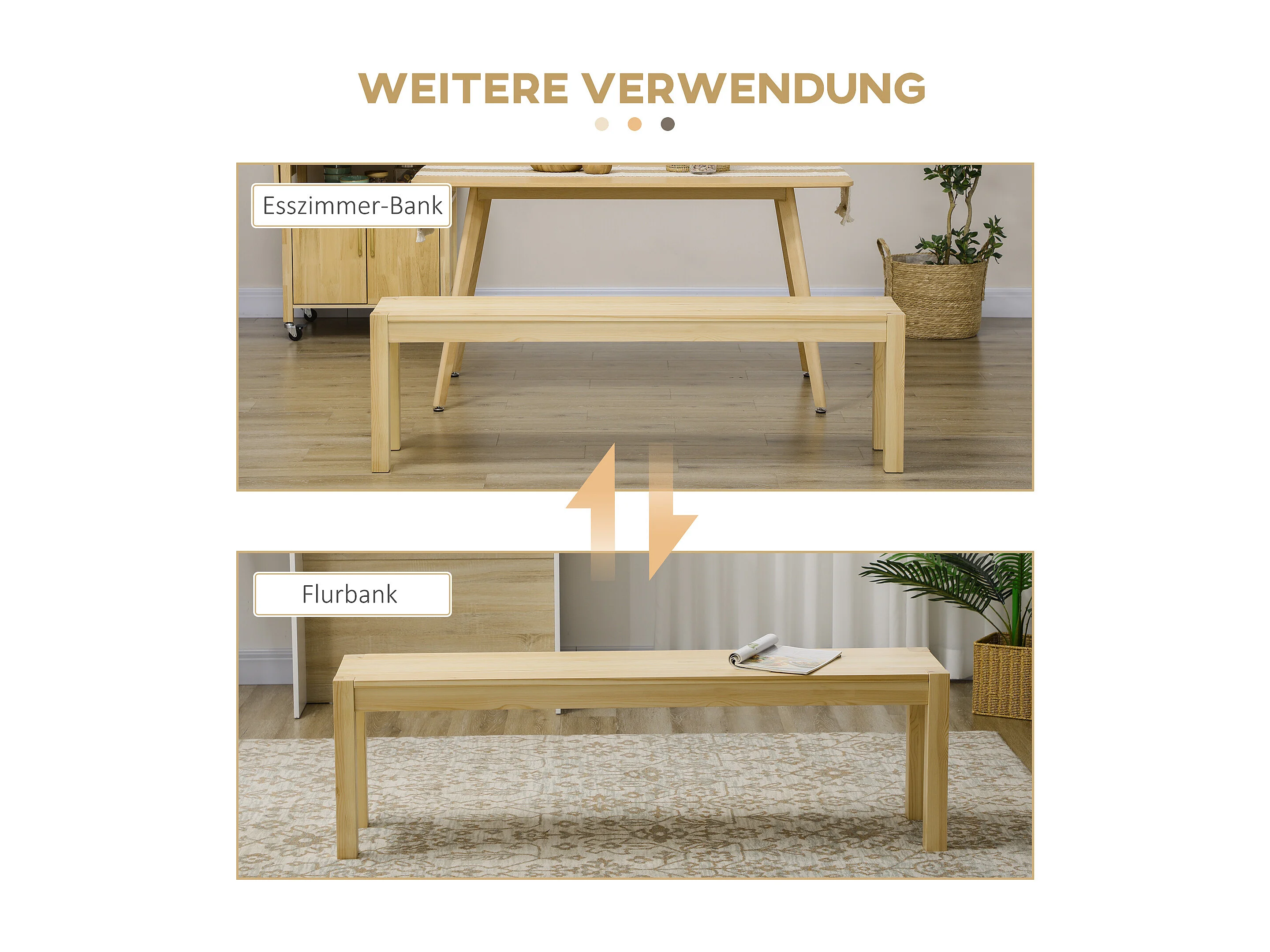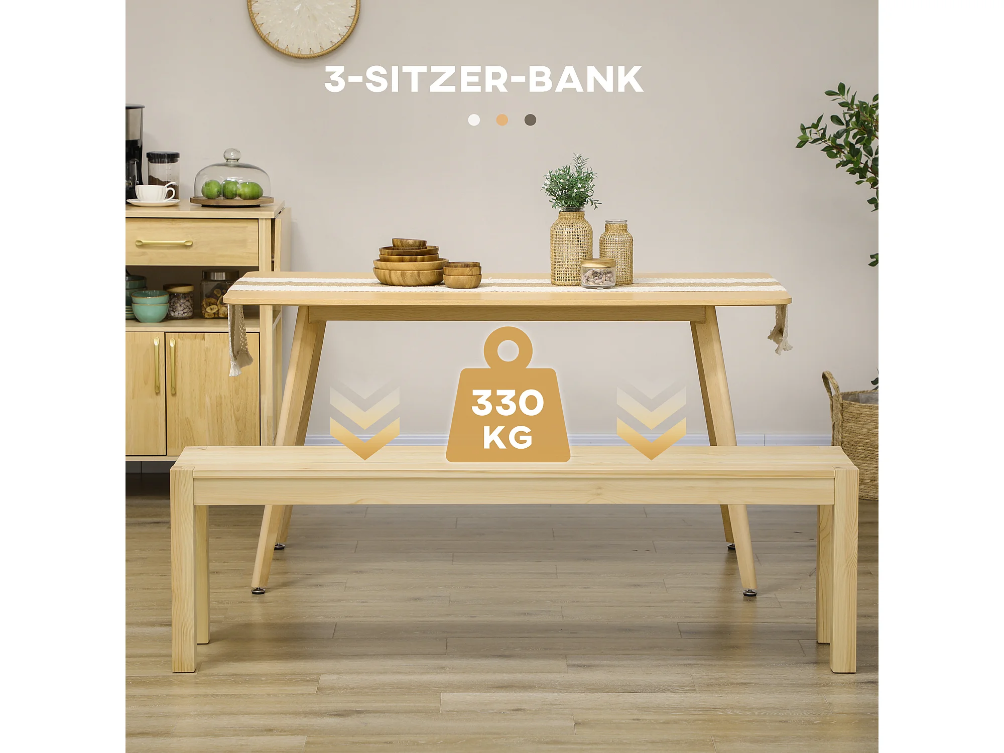 Banc en bois 3 places, style maison de campagne, pin, naturel (150x33x45 cm)