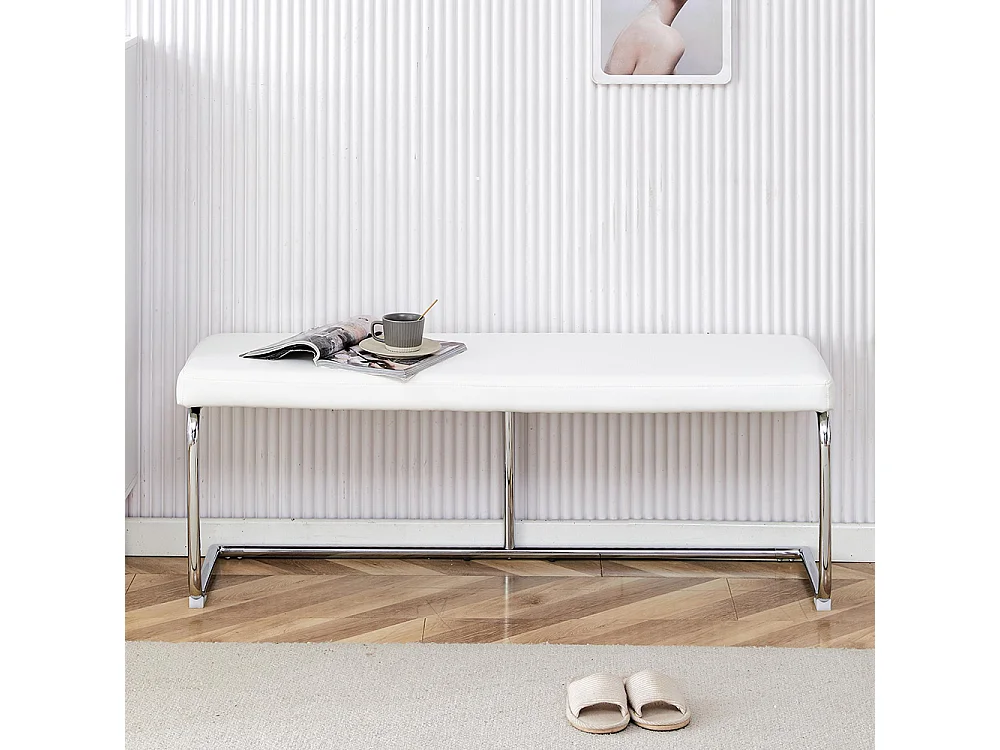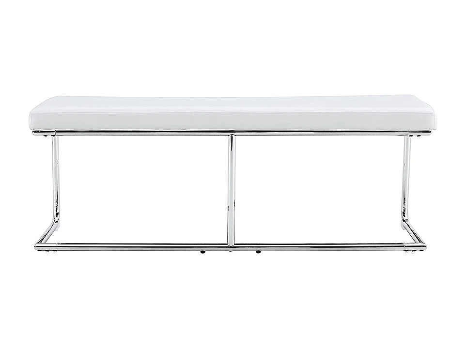 Banc en cuir avec structure chromée - 130 cm, banc moderne, blanc