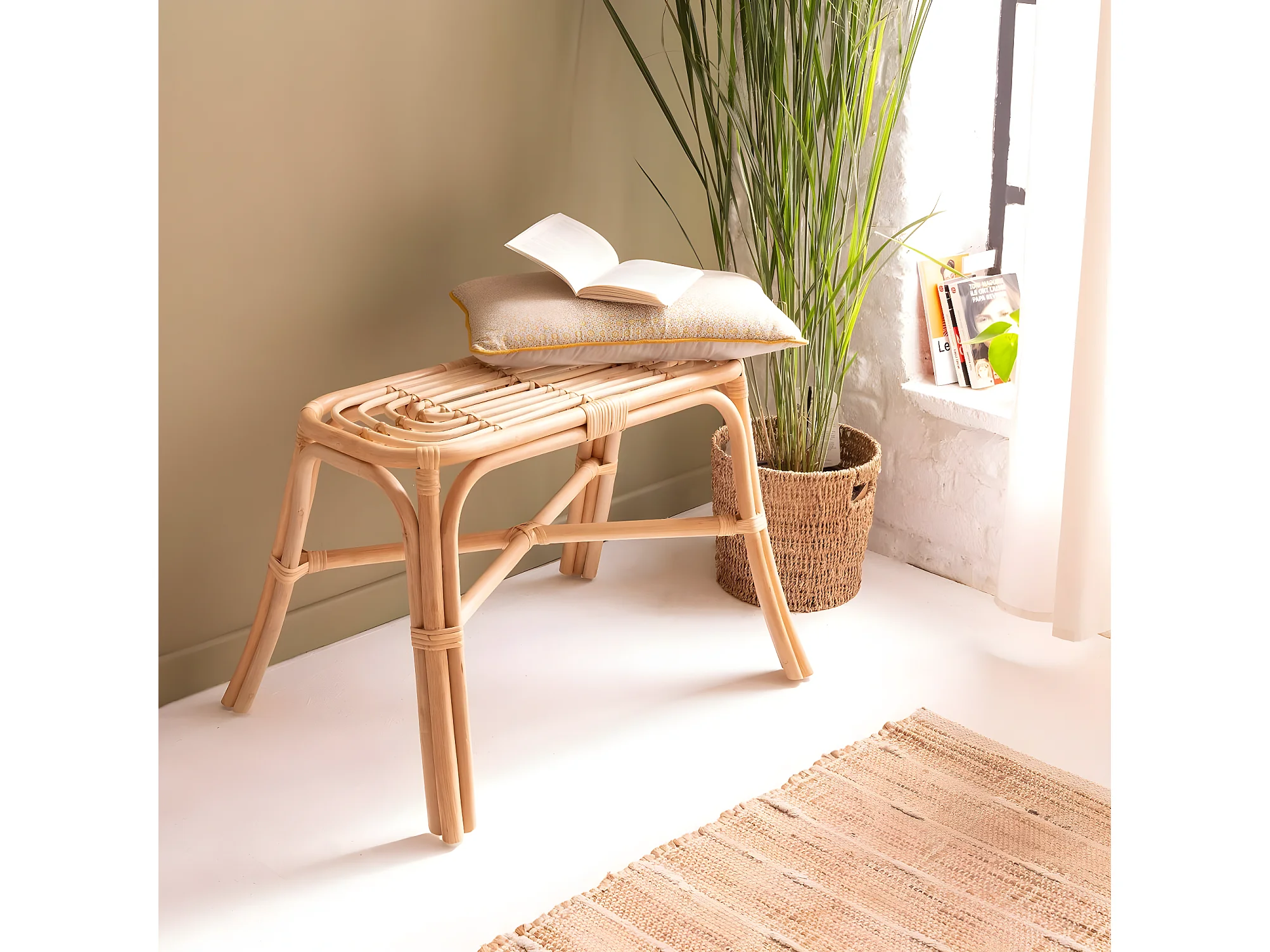 Pouf en tissu texturé 3D Clarisse - Beige - L90 x P50 x H41cm - Loungitude