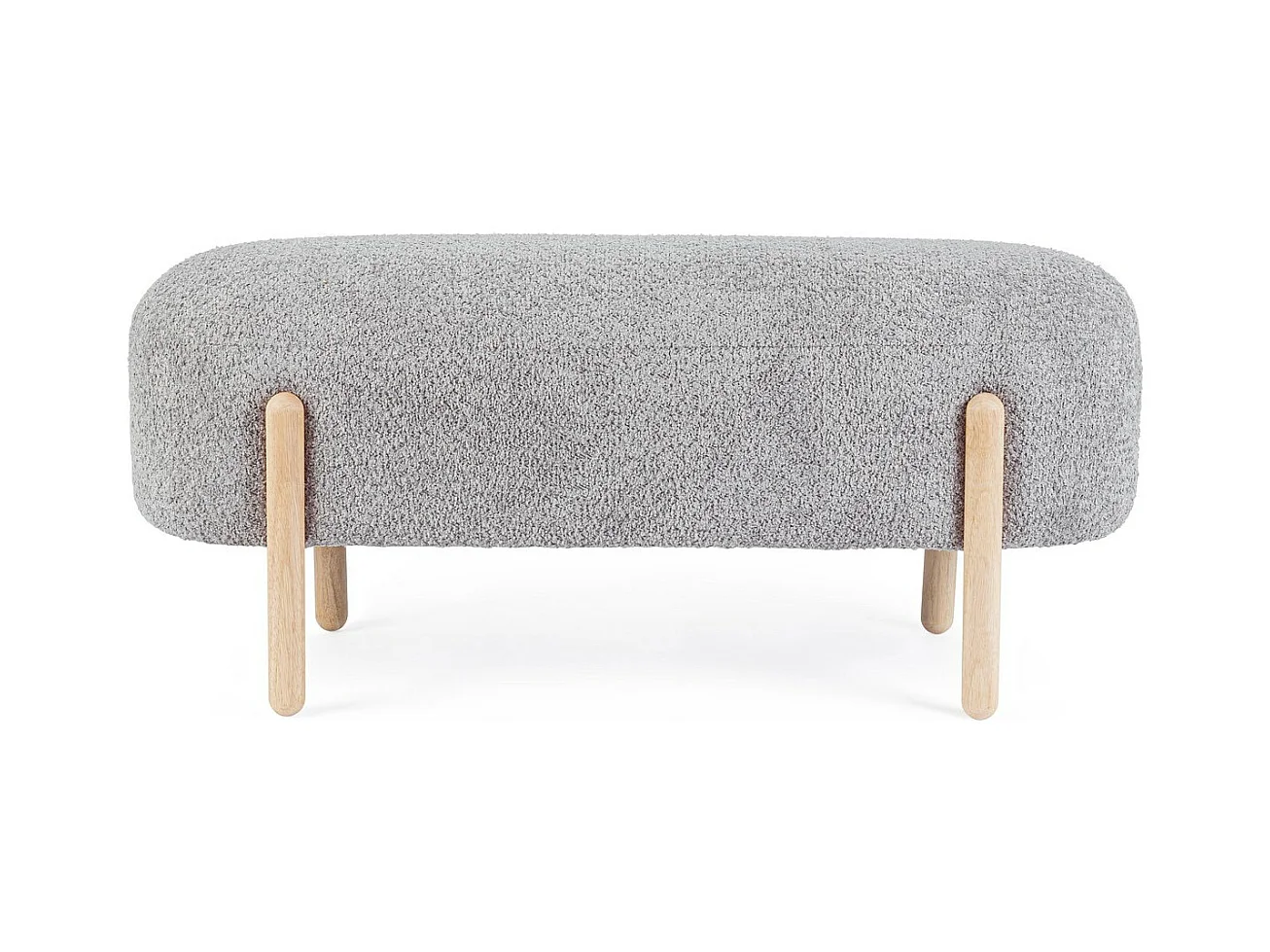 Banc en tissu effet bouclé gris clair, pieds en bois d'hévéa - DAYLA