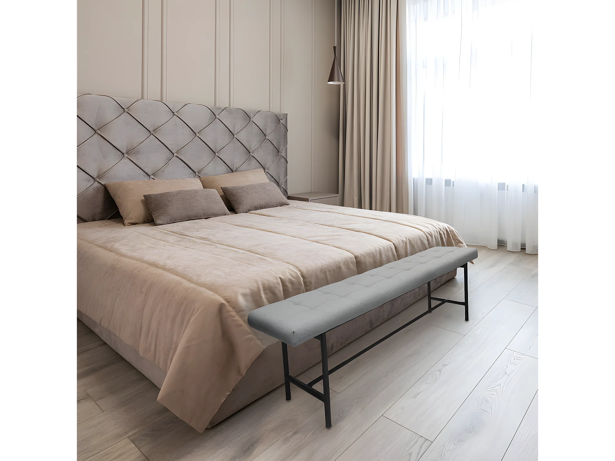Banc en tissu gris capitonné avec structure en acier noir - MORO 8879