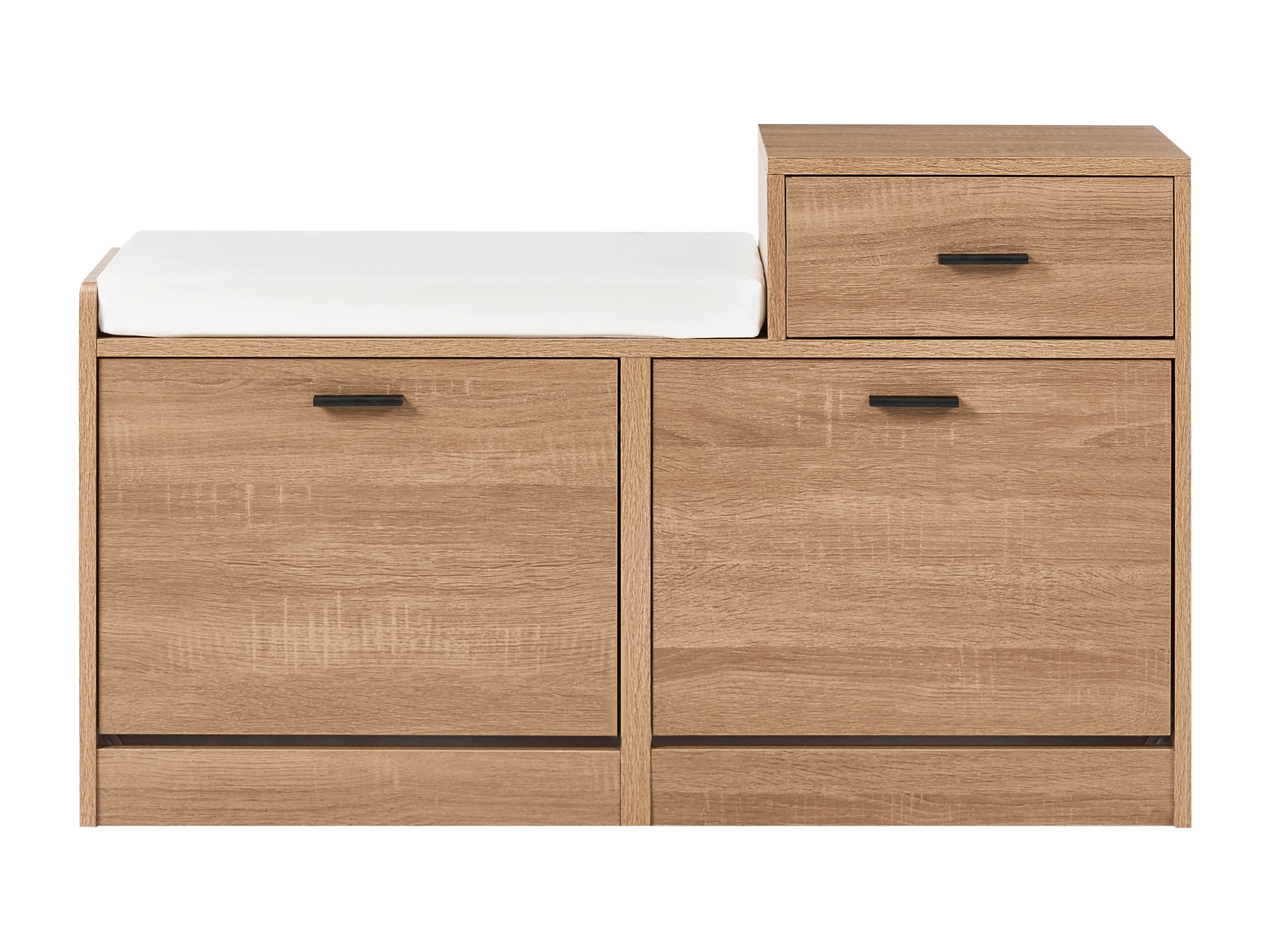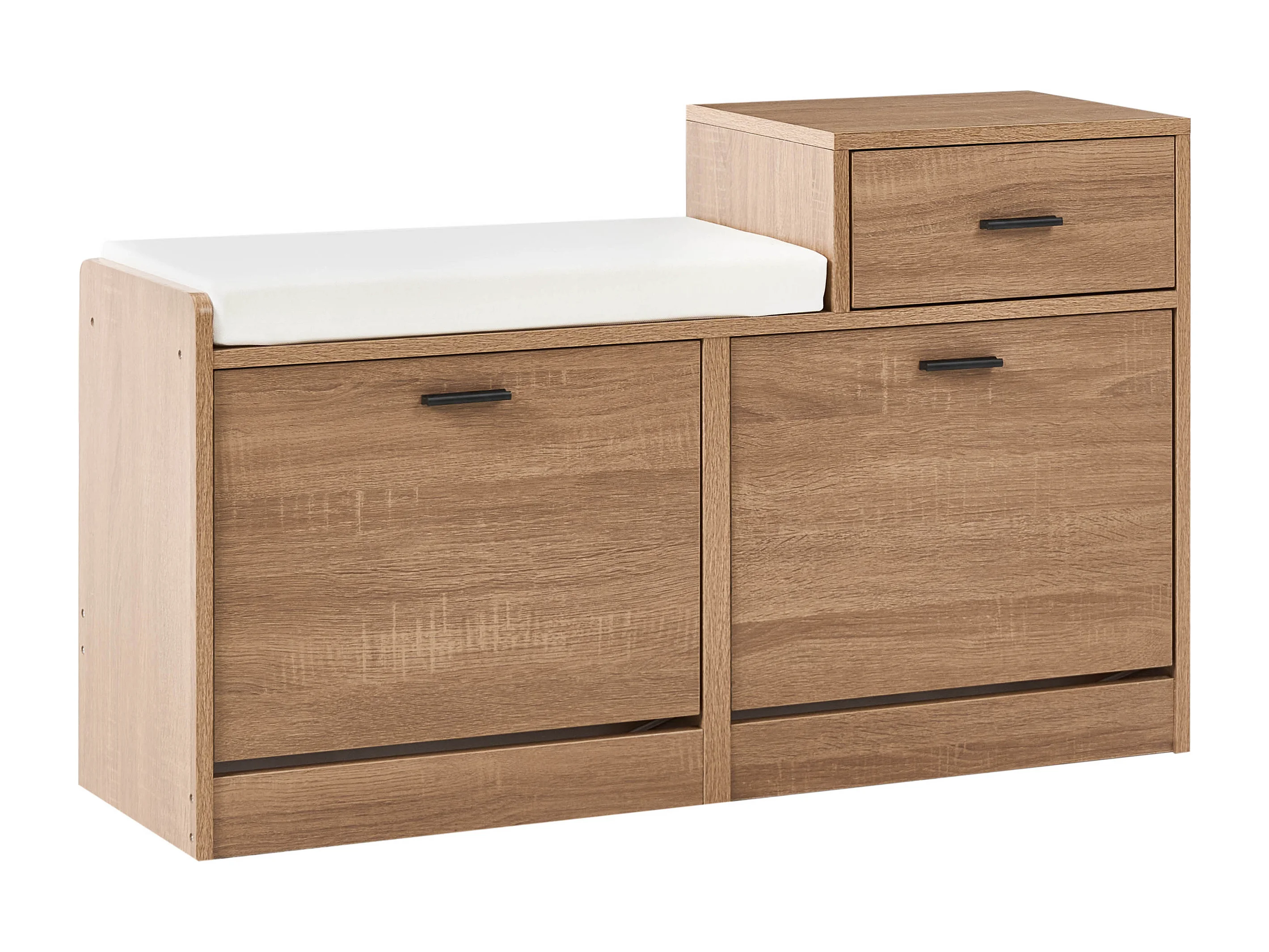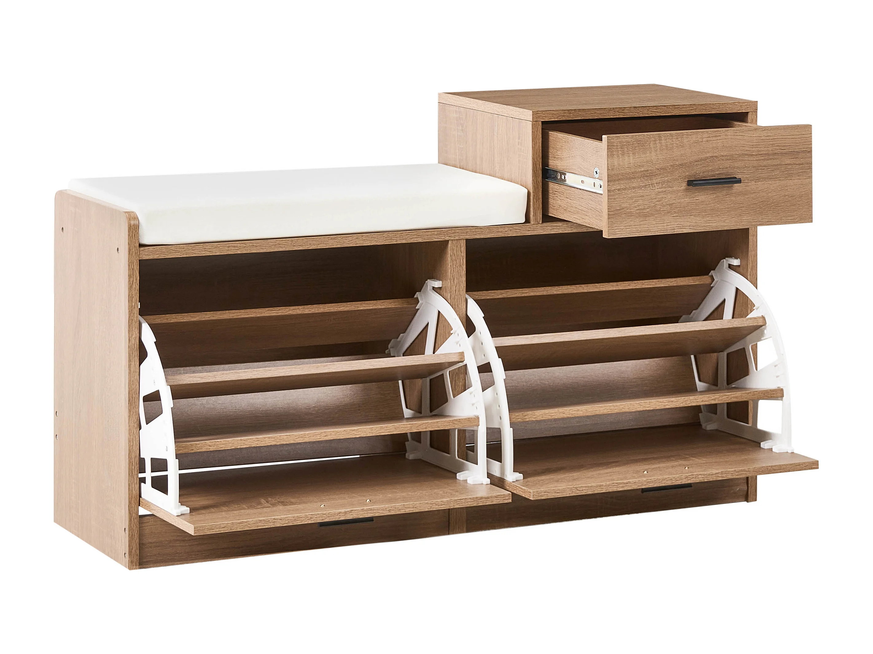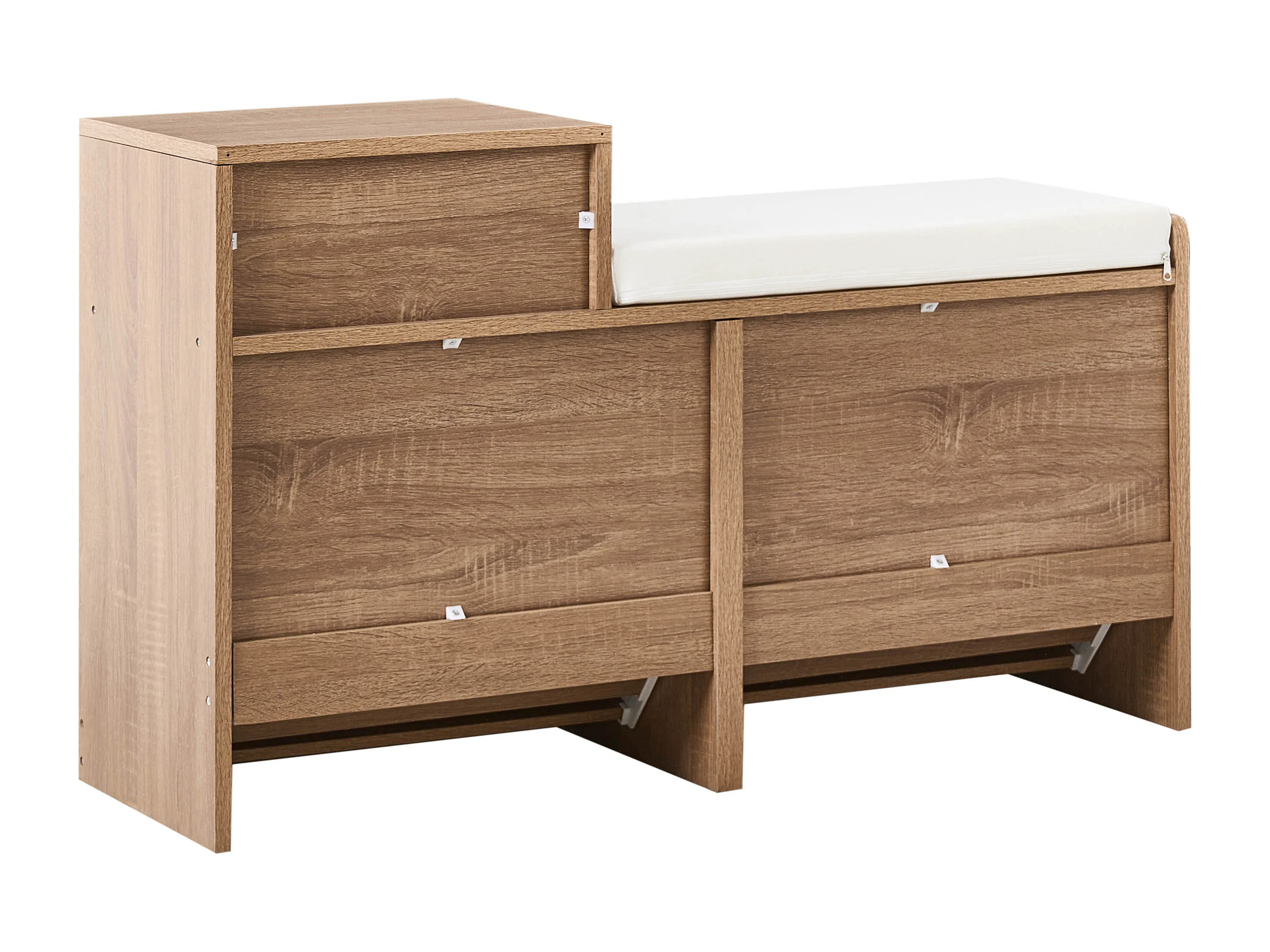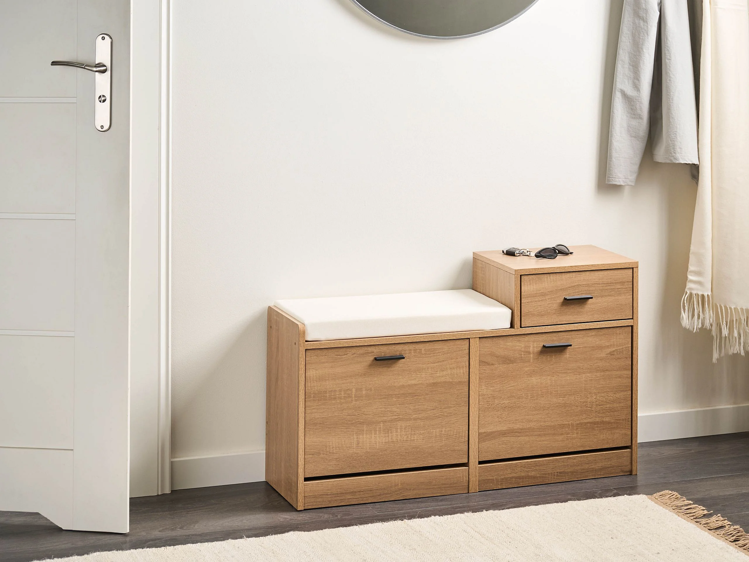 Meuble à chaussures scandinave décor bois noyer 3 portes abattantes capacité 18 paires de chaussures