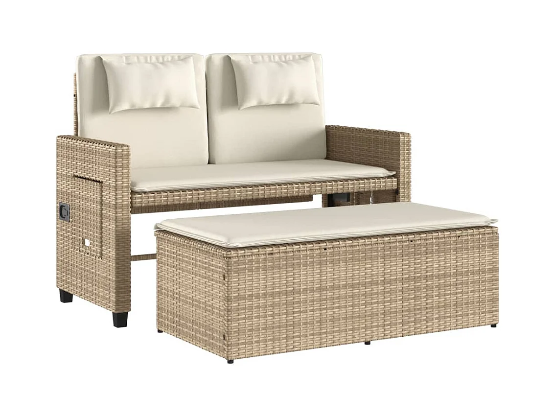 Banc inclinable de jardin avec coussins beige résine tressée FR881606