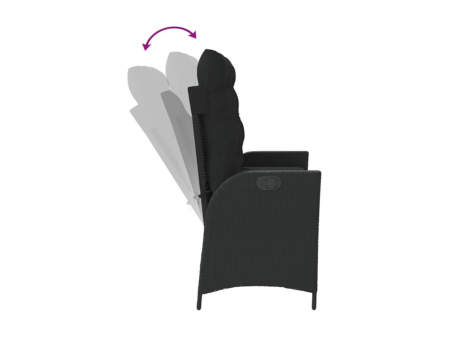 Banc inclinable de jardin avec coussins noir résine tressée