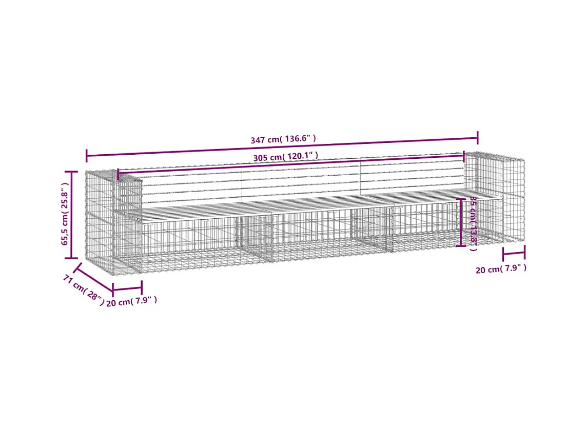 Banc jardin design gabion 347x71x65,5 bois massif de douglas
