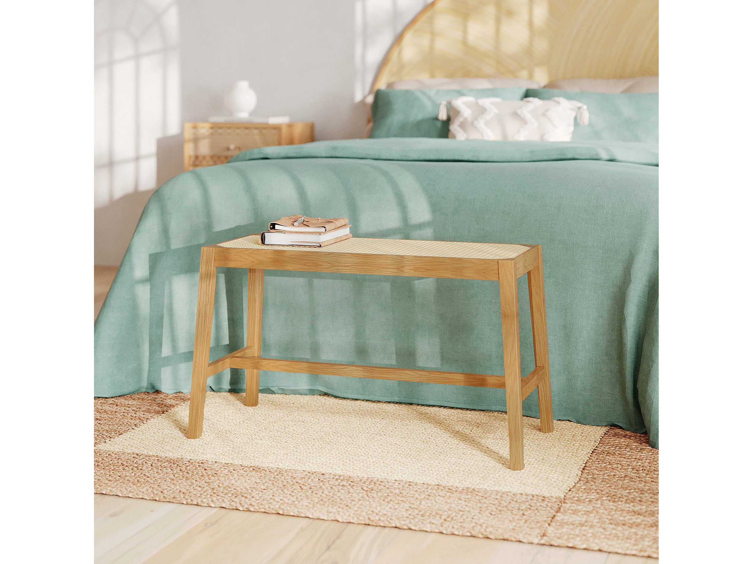 Banc 2 places en bois de chêne massif et cannage - Kappa
