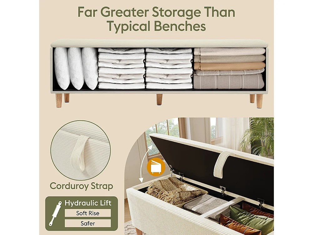 Banc lit rangement hydraulique coffre chambre salon couloir velours côtelé beige