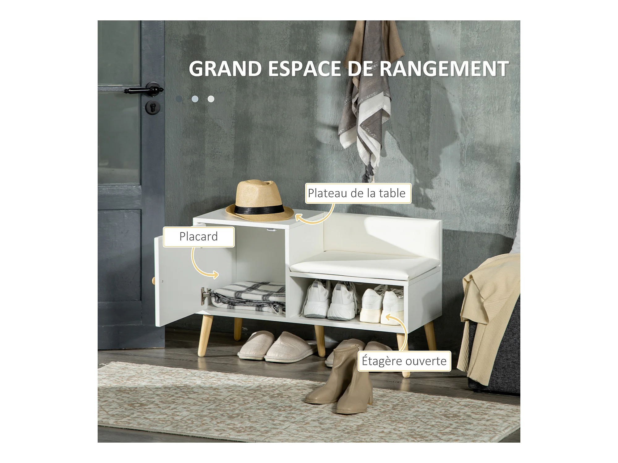 Banc meuble à chaussures 2 en 1 style scandinave - porte, niche, étagère - bois pin blanc
