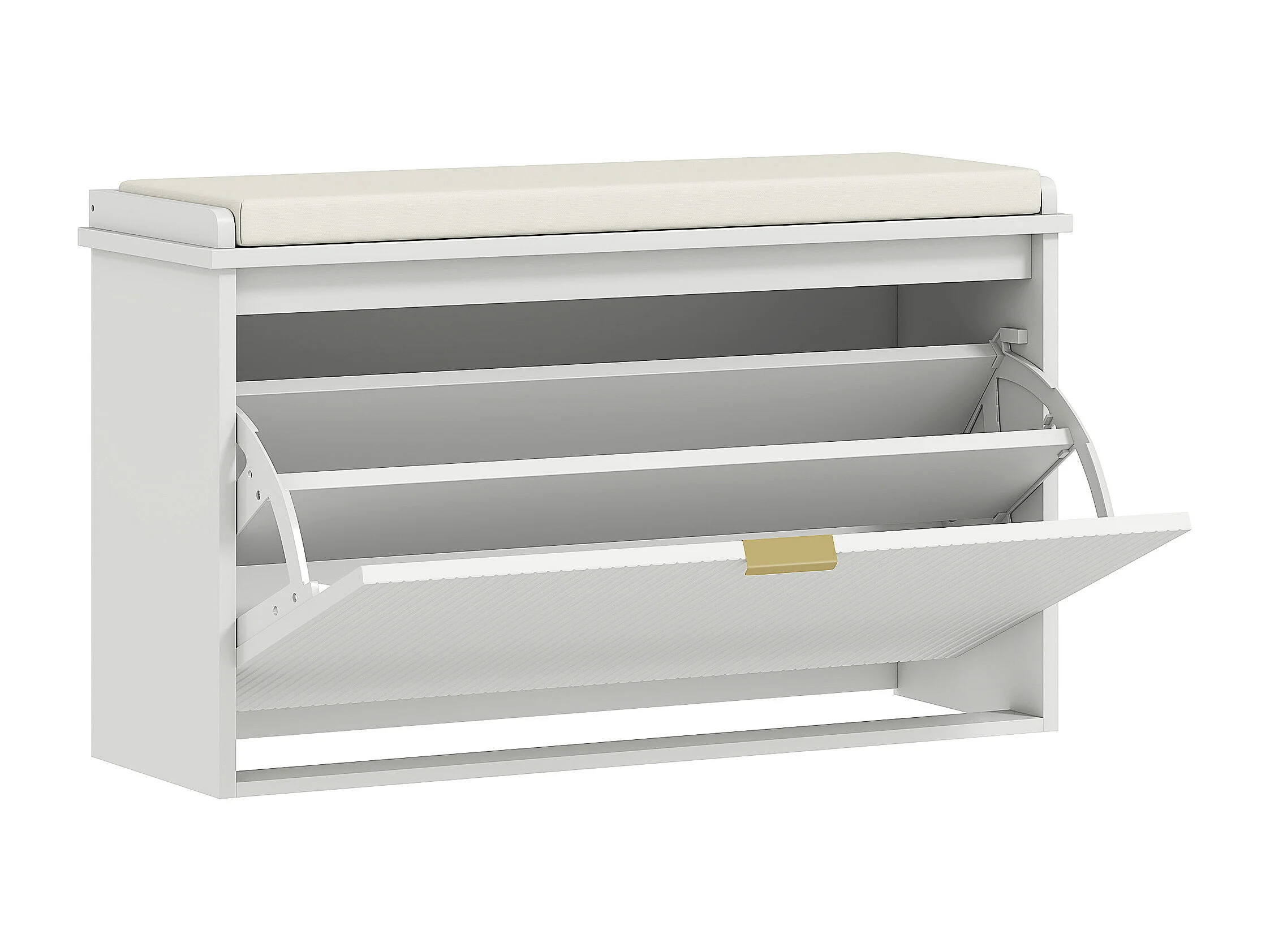 Banc meuble à chaussures design 2 en 1 - porte, séparateur réglable amovible - blanc doré