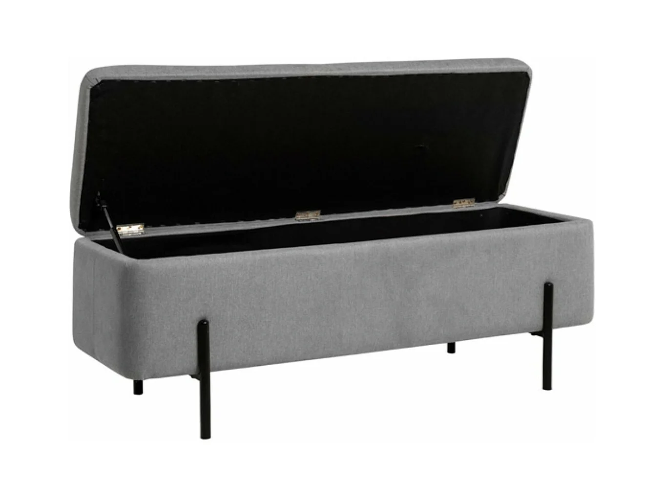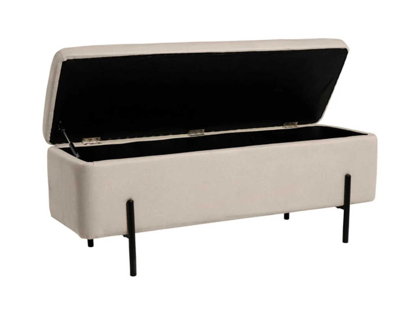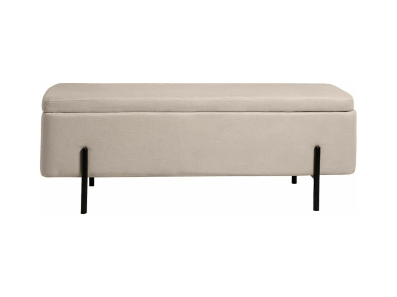 Banc moderne avec coffre de rangement tissu et pieds en métal noir Navika-Couleur Beige clair