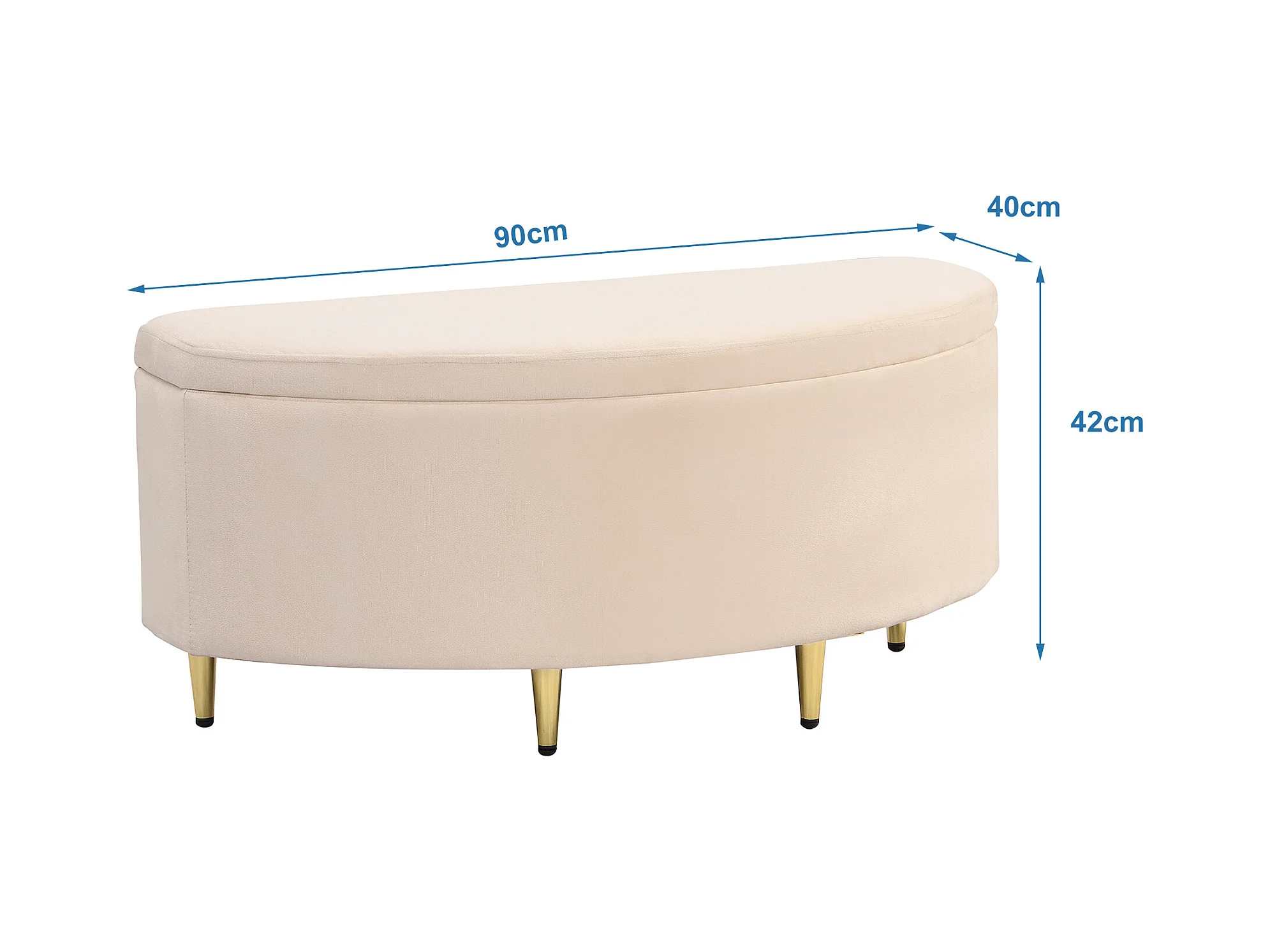 Banc rembourré 90x40x42 cm avec rangement en velours - Beige