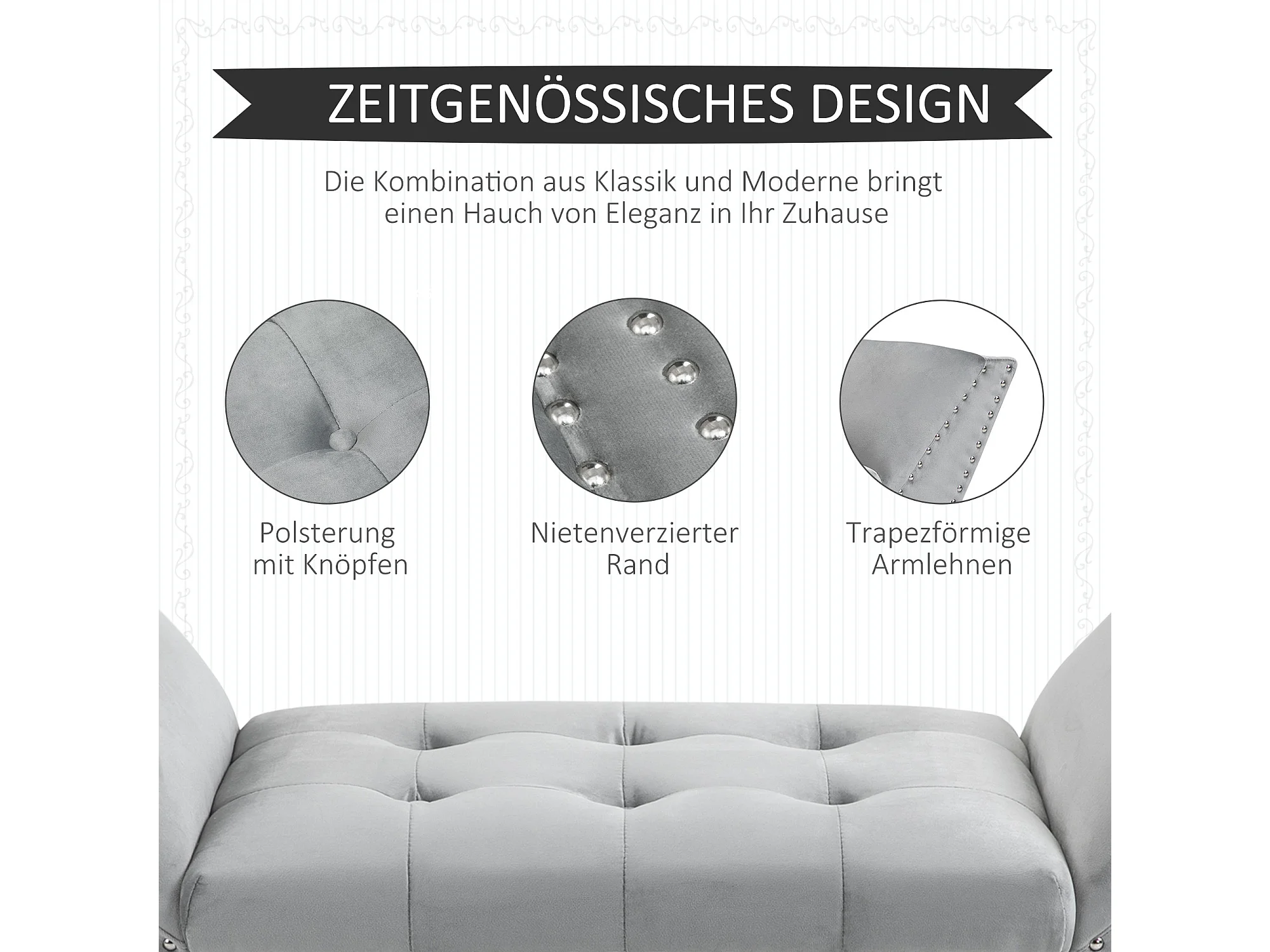 Banc rembourré élégant avec accoudoirs roulés, polyester, gris clair (132x45.5x58cm)