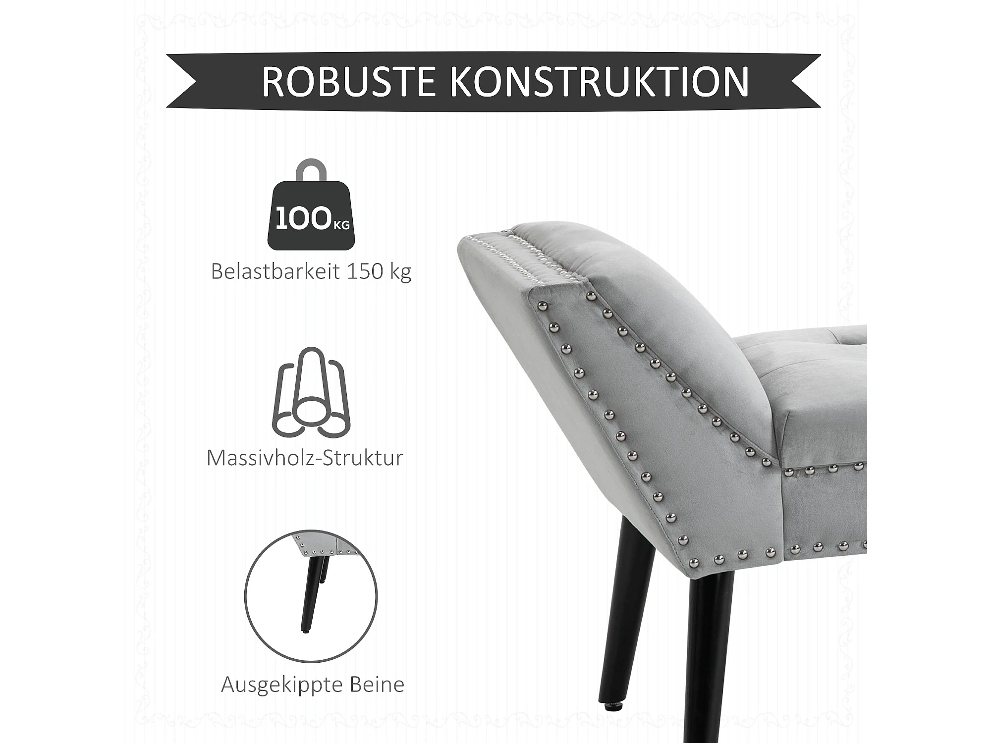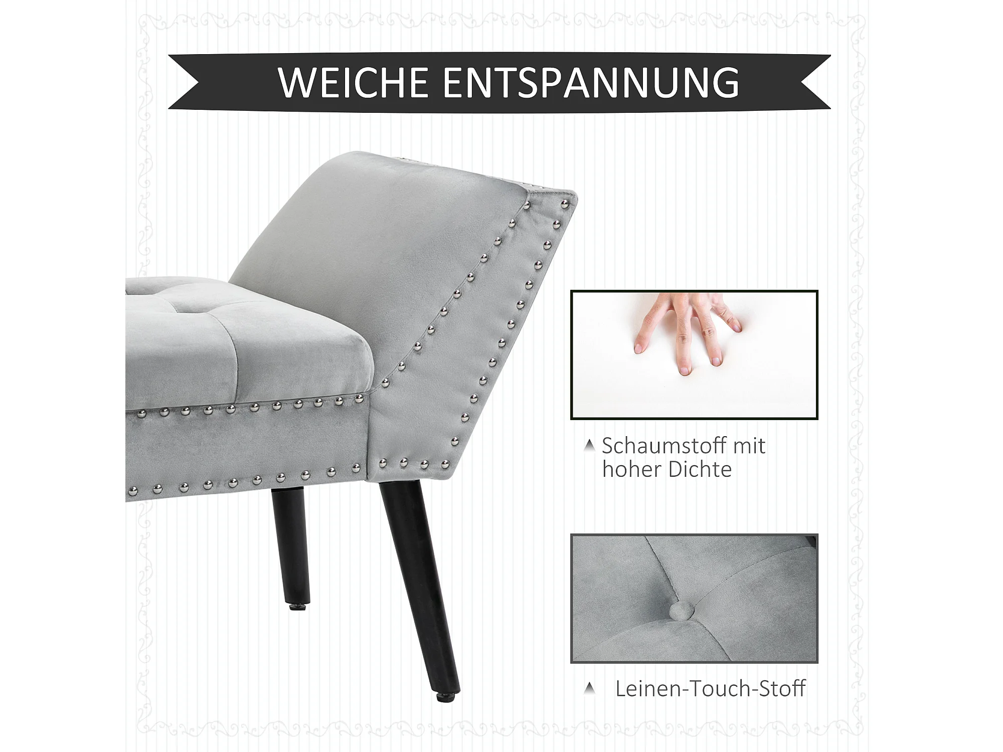 Banc vintage en lin, avec boutons décoratifs, pieds en bois, gris (80x40x43 cm)