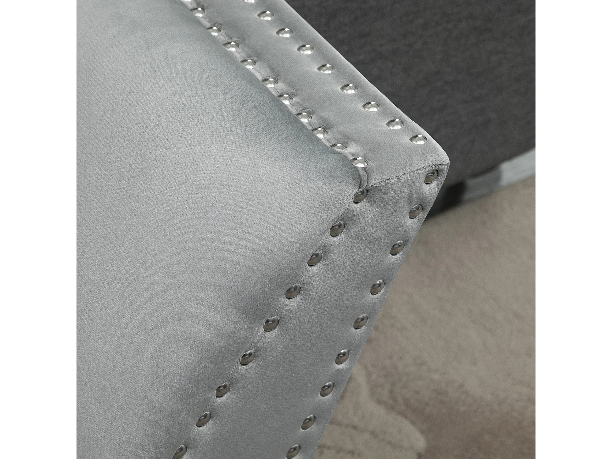 Banc rembourré moderne, pieds en bois caoutchouc, velours gris clair (114x46x56cm)