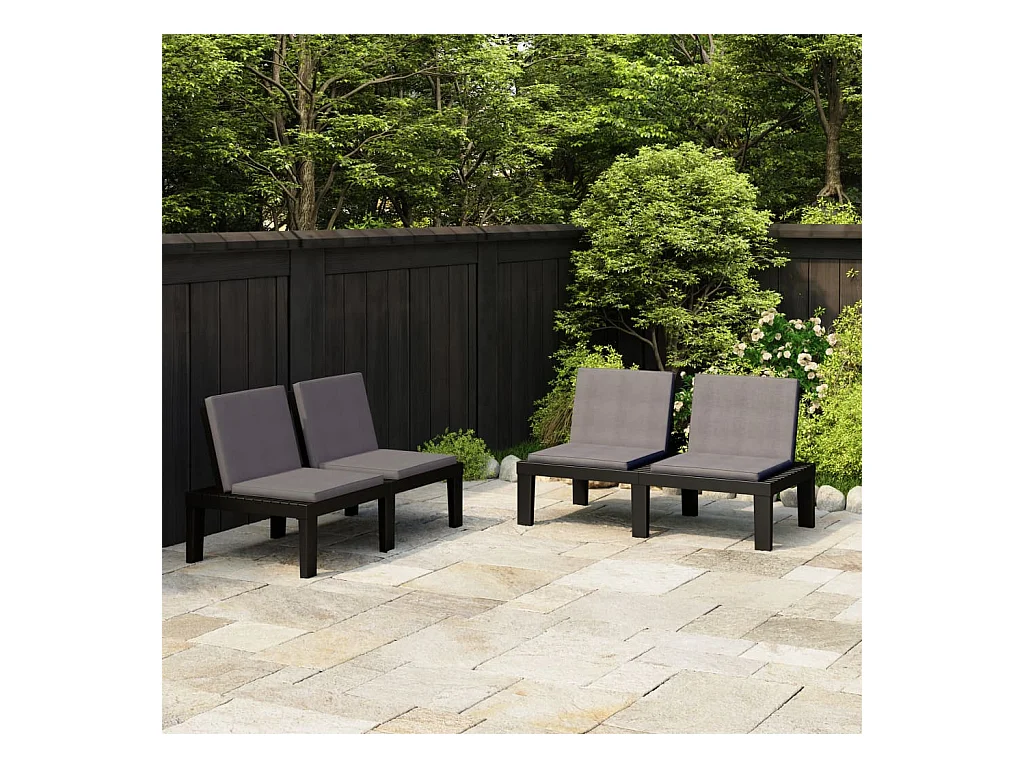 Bancs de salon de jardin avec coussins 2 pcs Plastique Gris