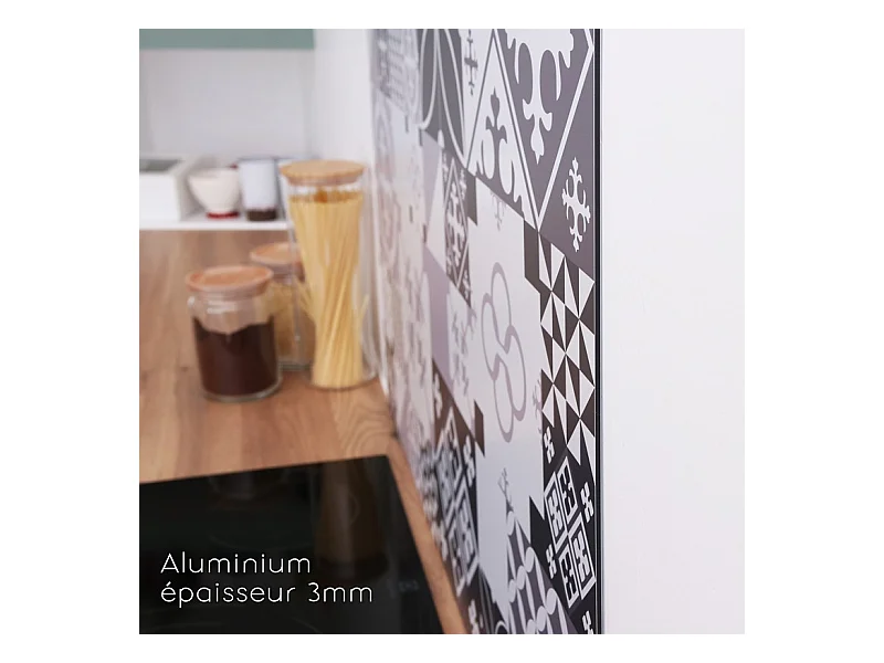 Crédence cuisine adhésive en aluminium effet carreaux de ciment gris - 200x20 cm (en 2 bandeaux)