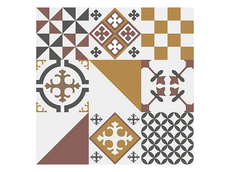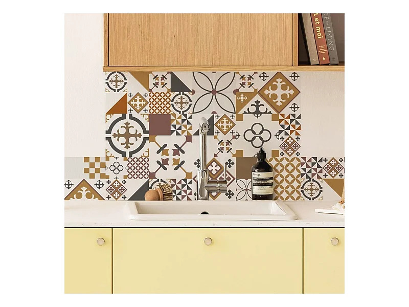 Crédence cuisine adhésive en aluminium effet carreaux de ciment orange - 200x20 cm (en 2 bandeaux)