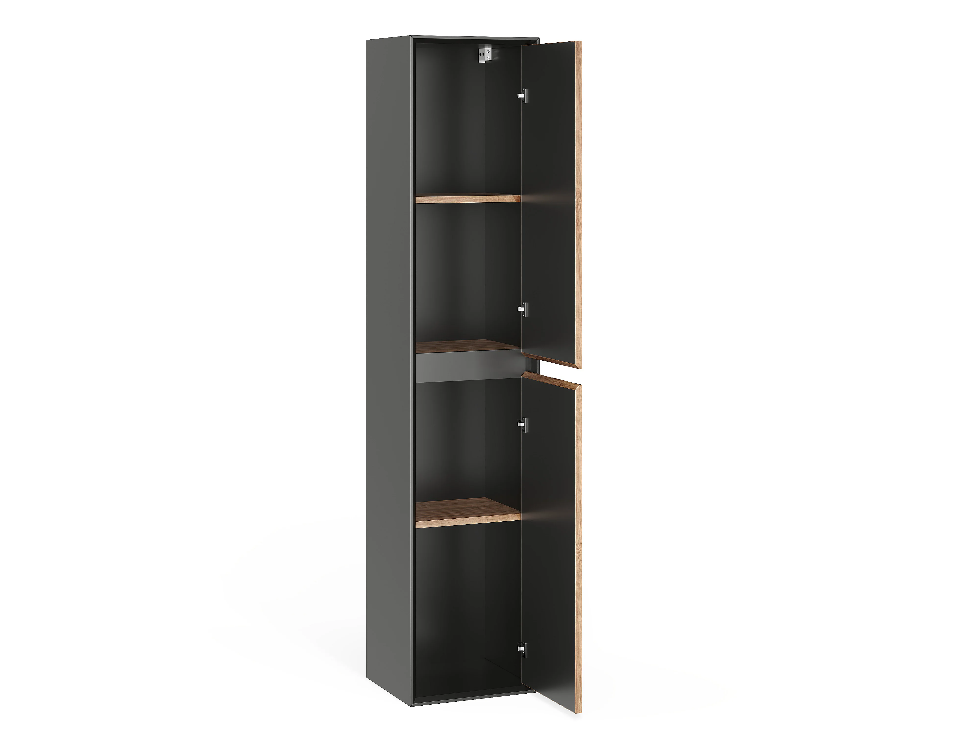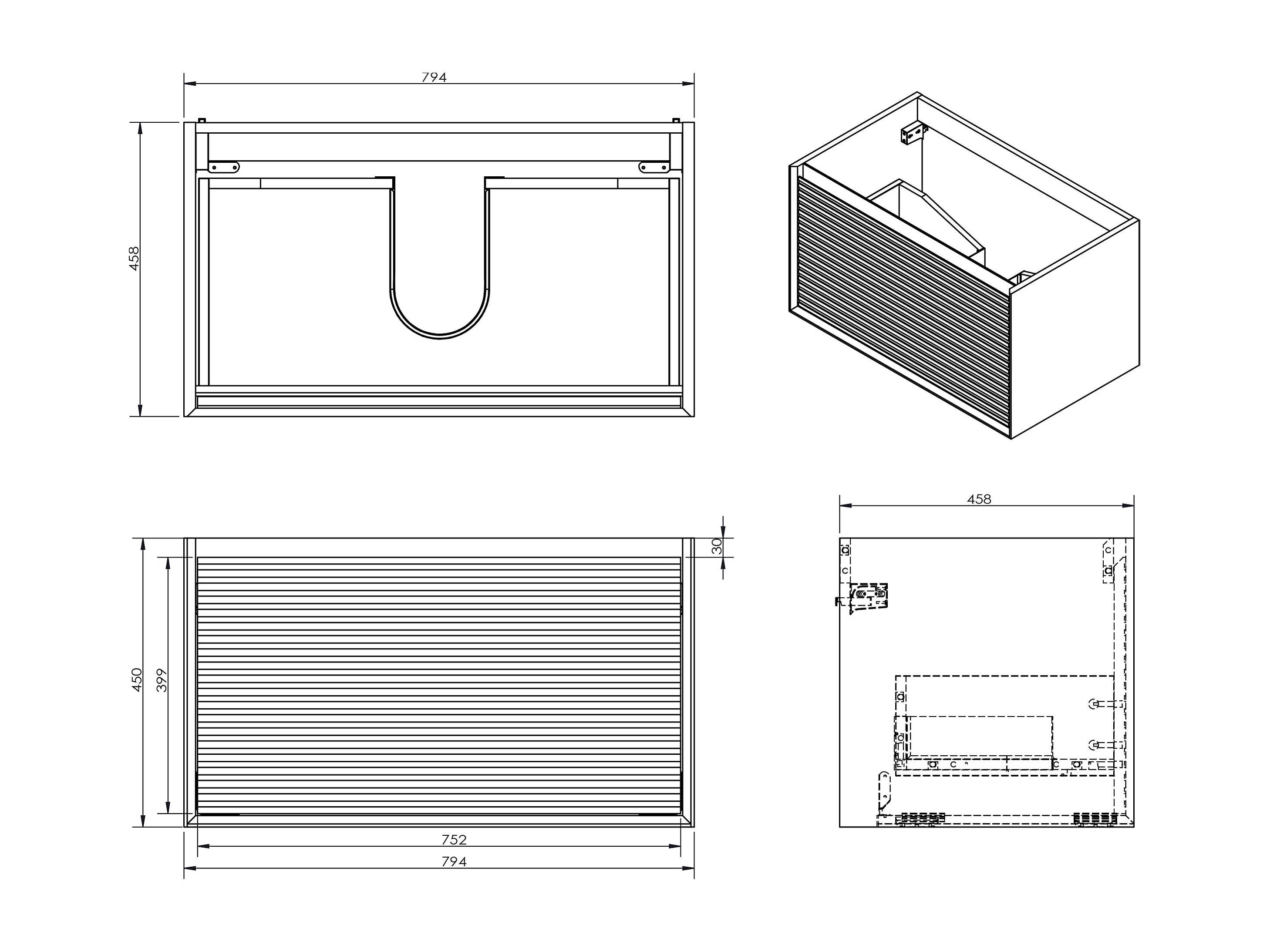 Meuble de salle de bain suspendu strié avec vasque à encastrer, colonne et robinet - Coloris naturel foncé et noir - 80 cm - BANIVA