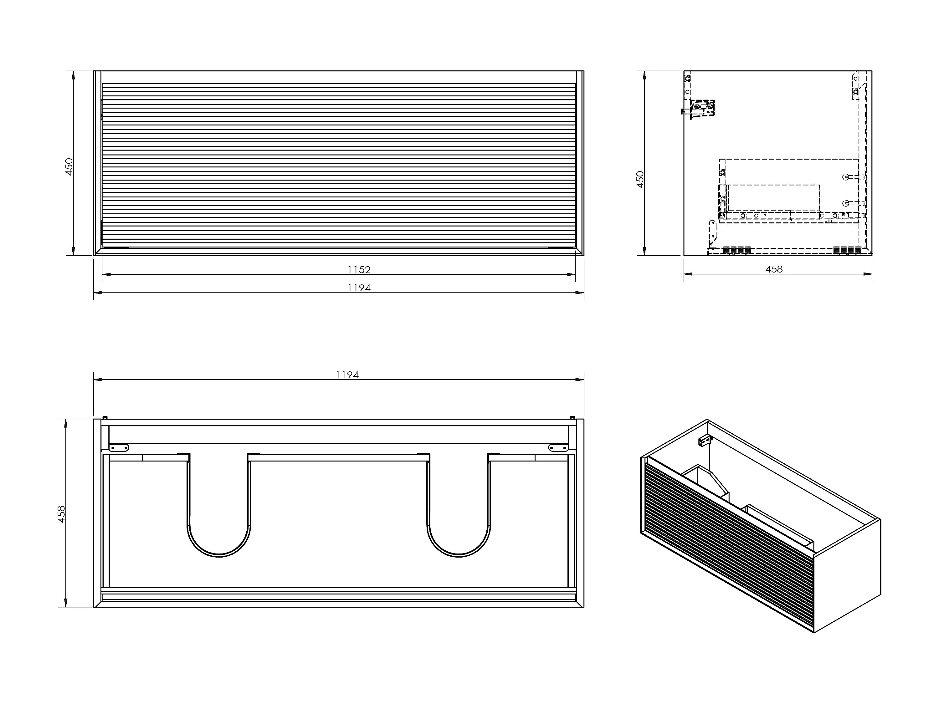 Meuble de salle de bain suspendu strié avec vasque à encastrer et robinet - Coloris naturel foncé et noir - 120 cm - BANIVA