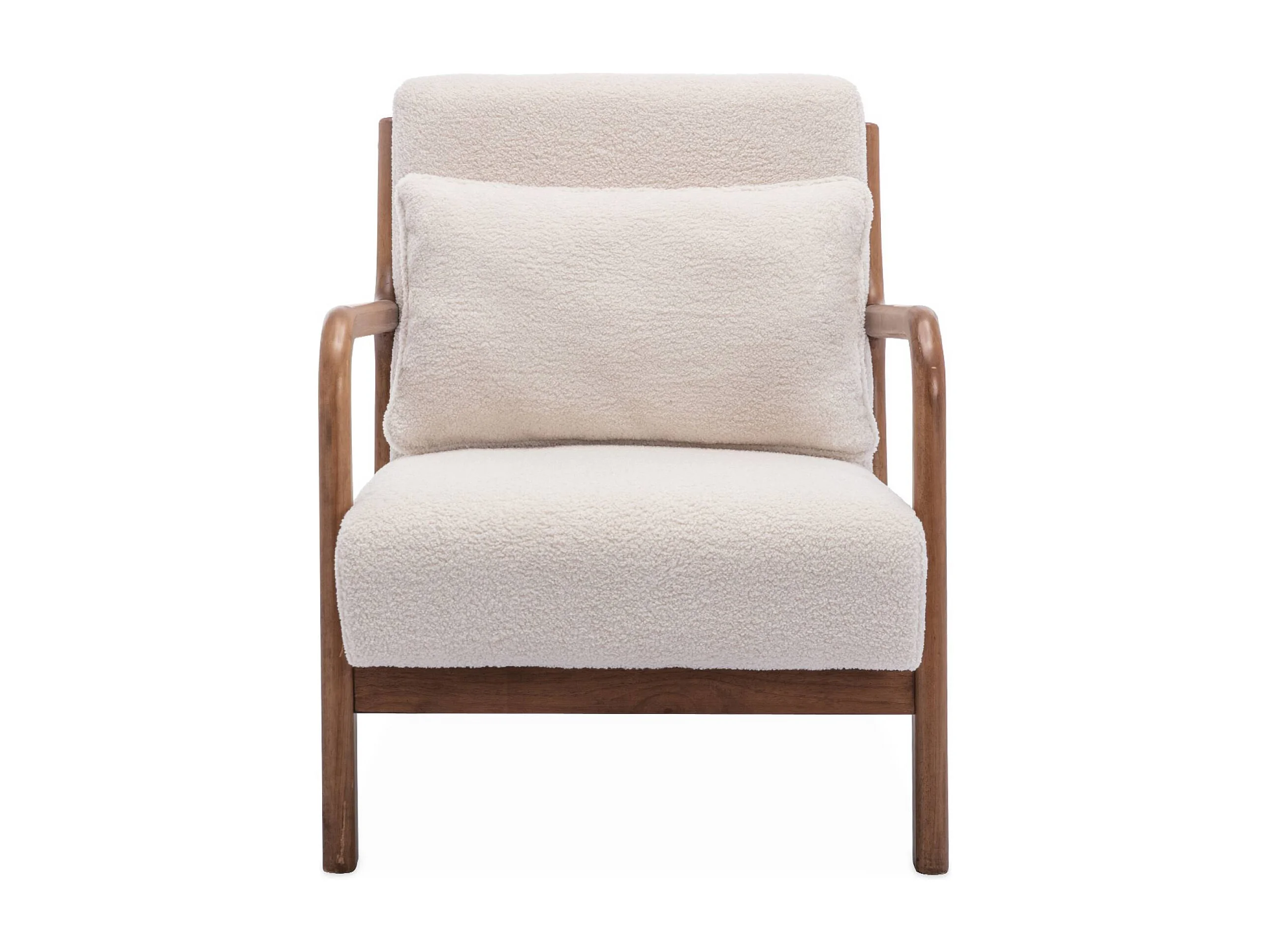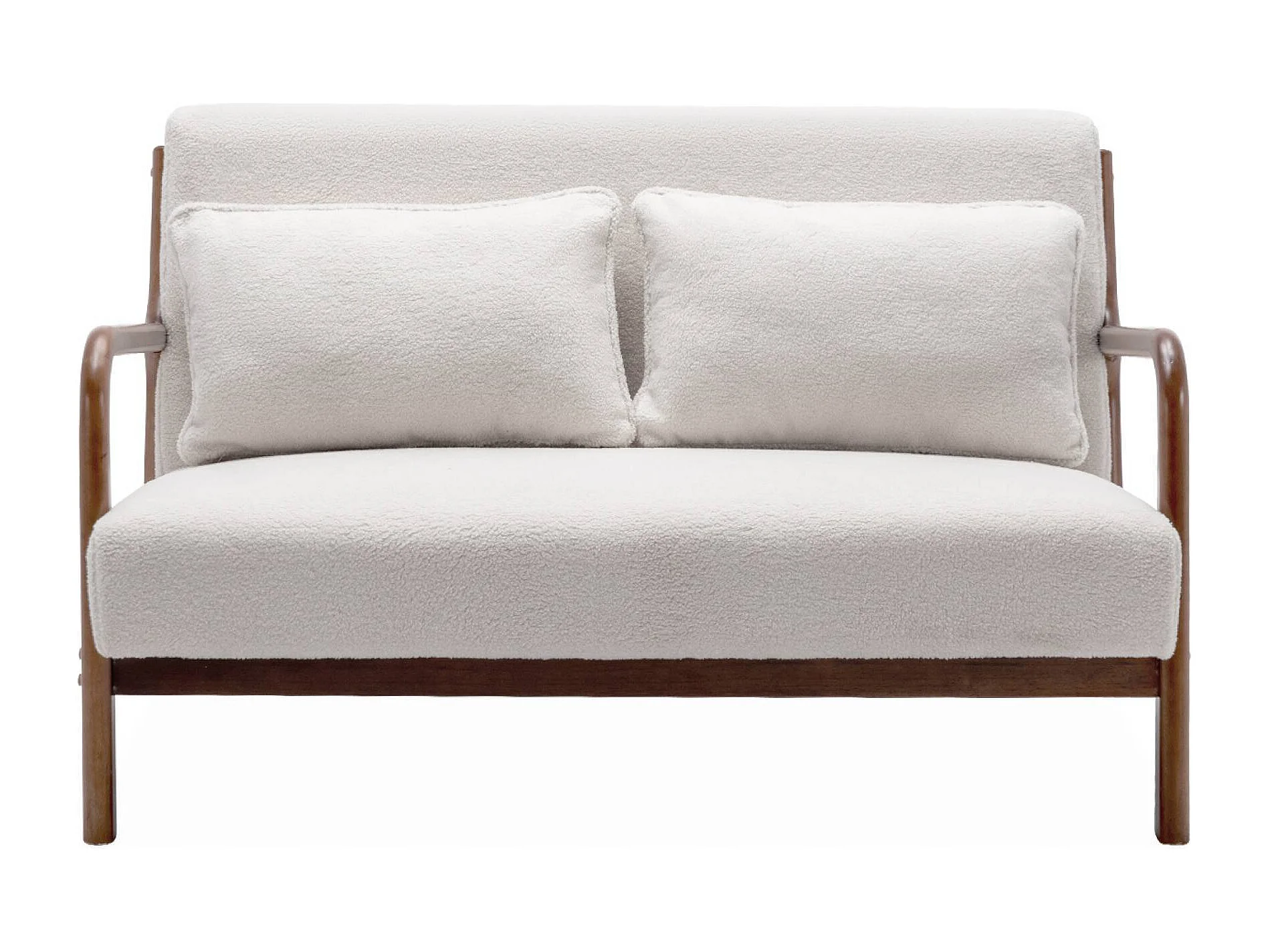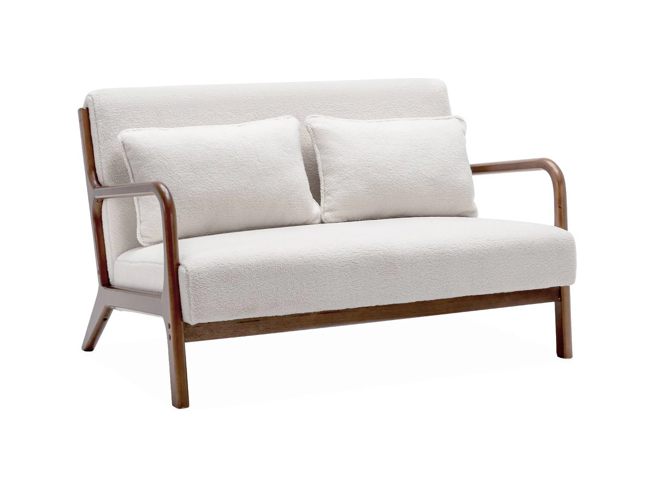 Banquette 2 places + Fauteuil bouclette en bois d'hévéa teinté noyer clair
