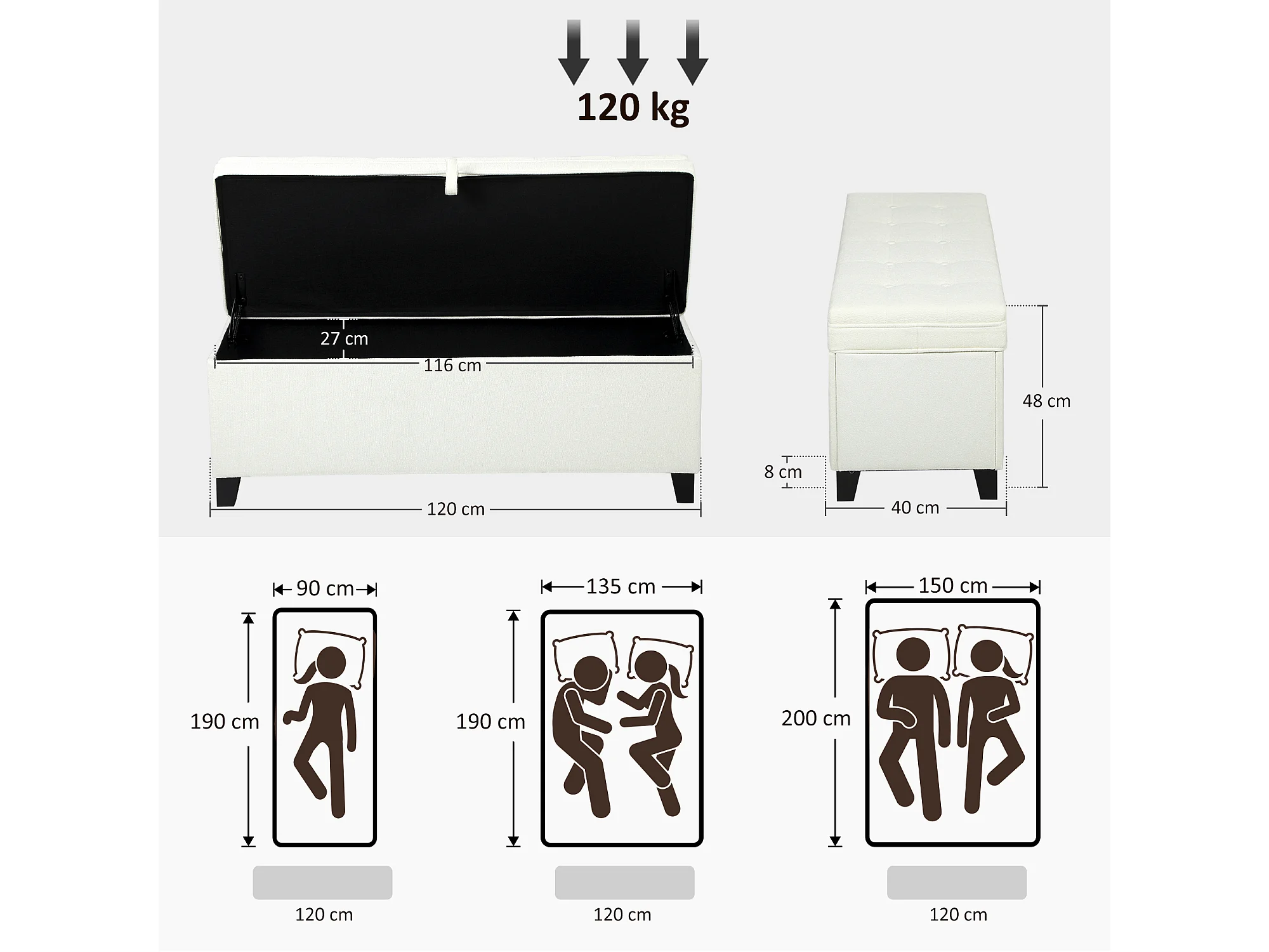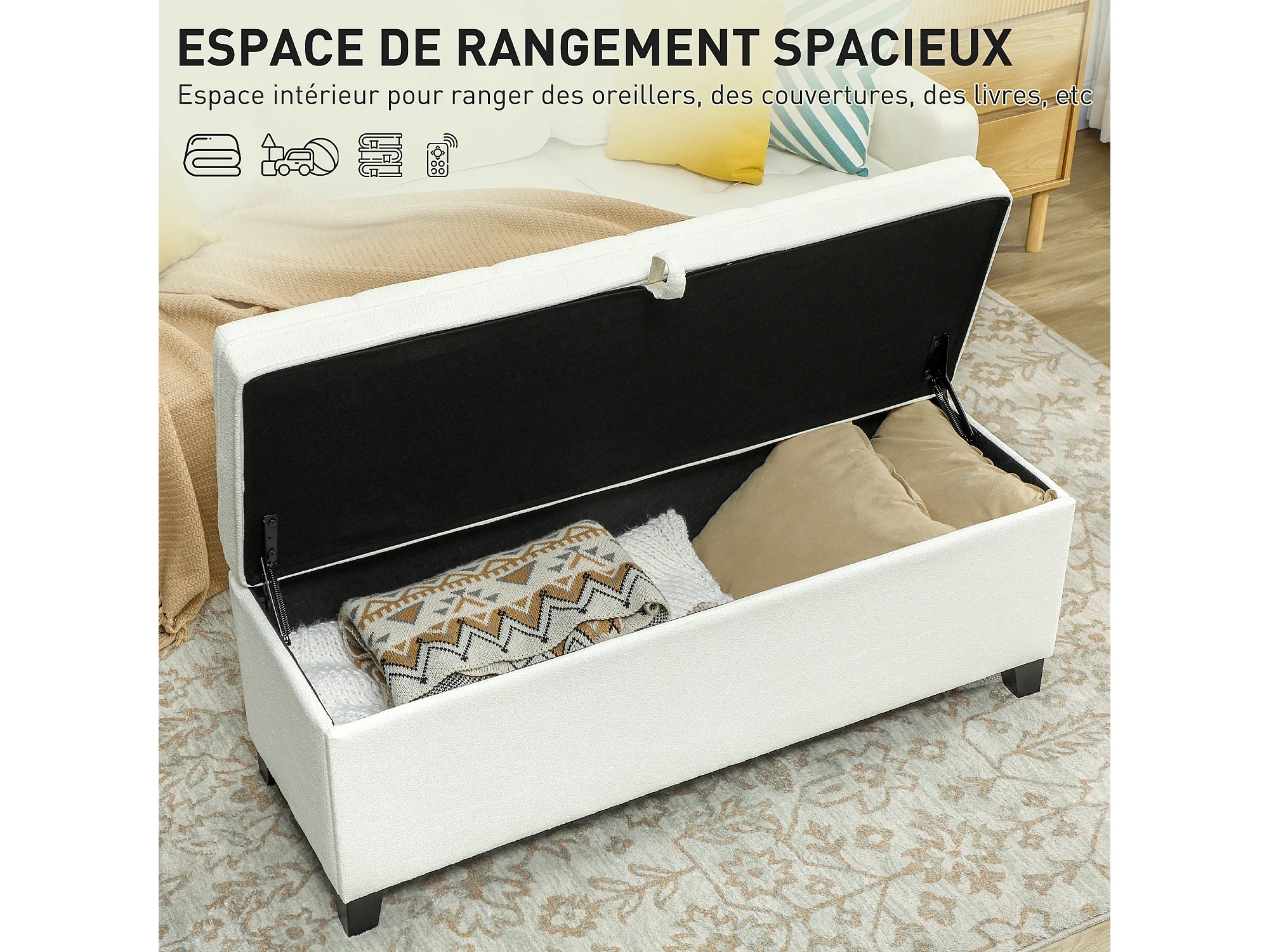Banquette bout de lit coffre design Chesterfield dim. 120 x 40 x 48 cm tissu écru
