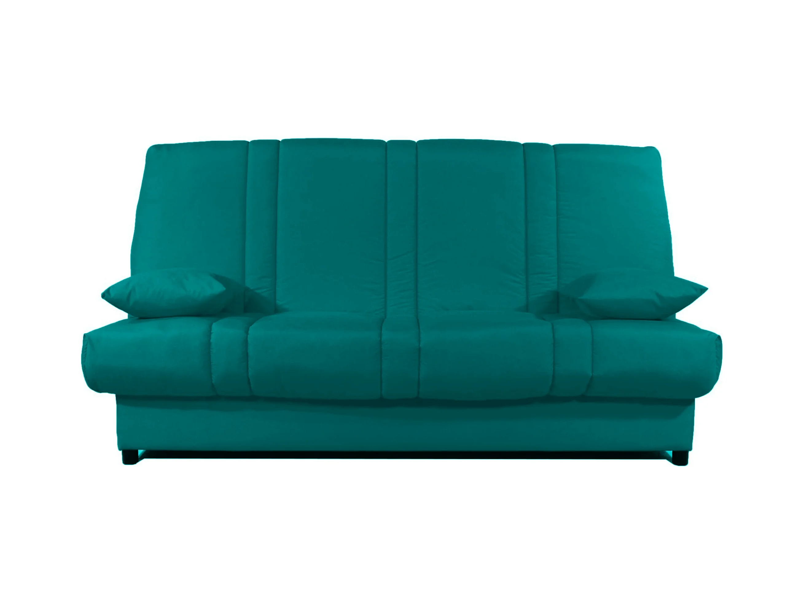 Banquette Clic-clac tissu 130x190 matelas Sofaconfort 14cm avec rangement Sofia-Couleur Vert emeraude