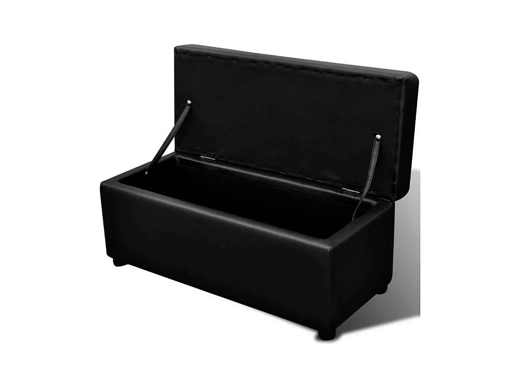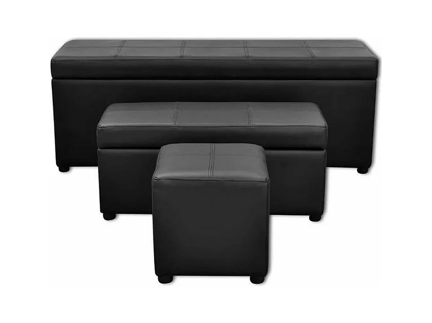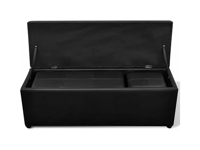 Banquette coffre avec pouf capitonné simili cuir noir Mandai - lot de 3