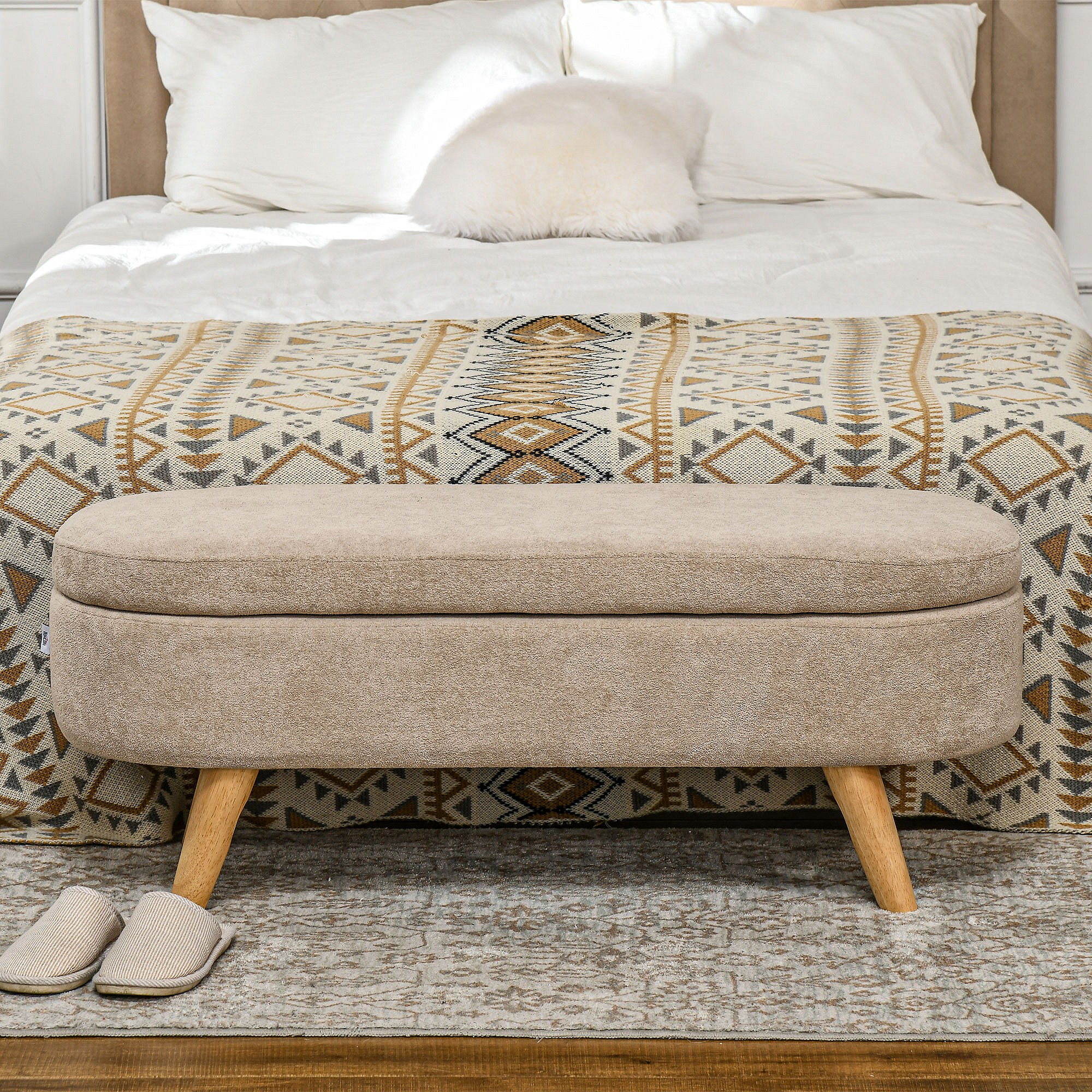 Banc rangement antidérapant chambre entrée salon chenille bois massif beige