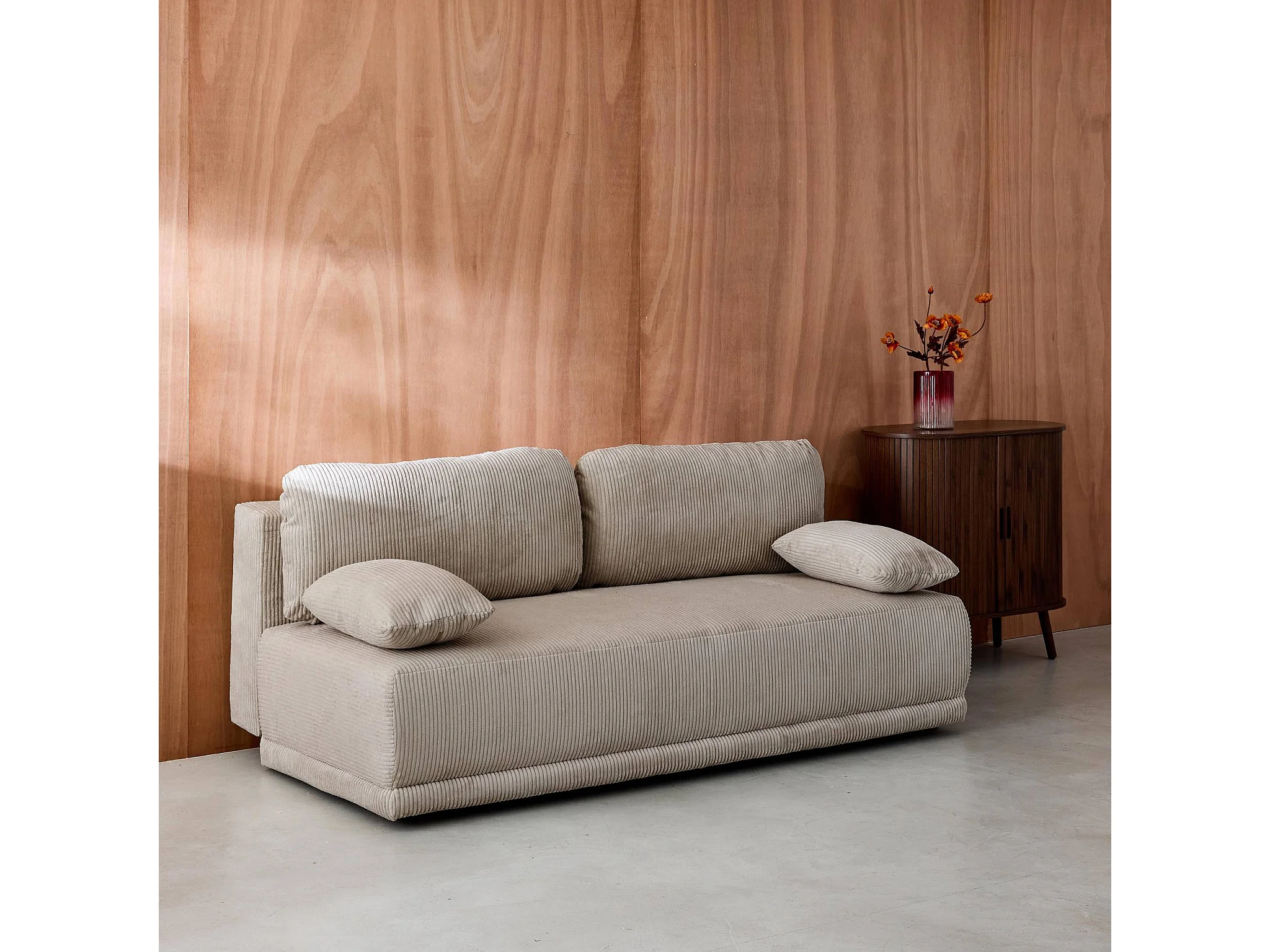 Banquette convertible 3 places velours côtelé taupe avec coffre de rangement - L 192 x P 100 x H 81cm -Nelson
