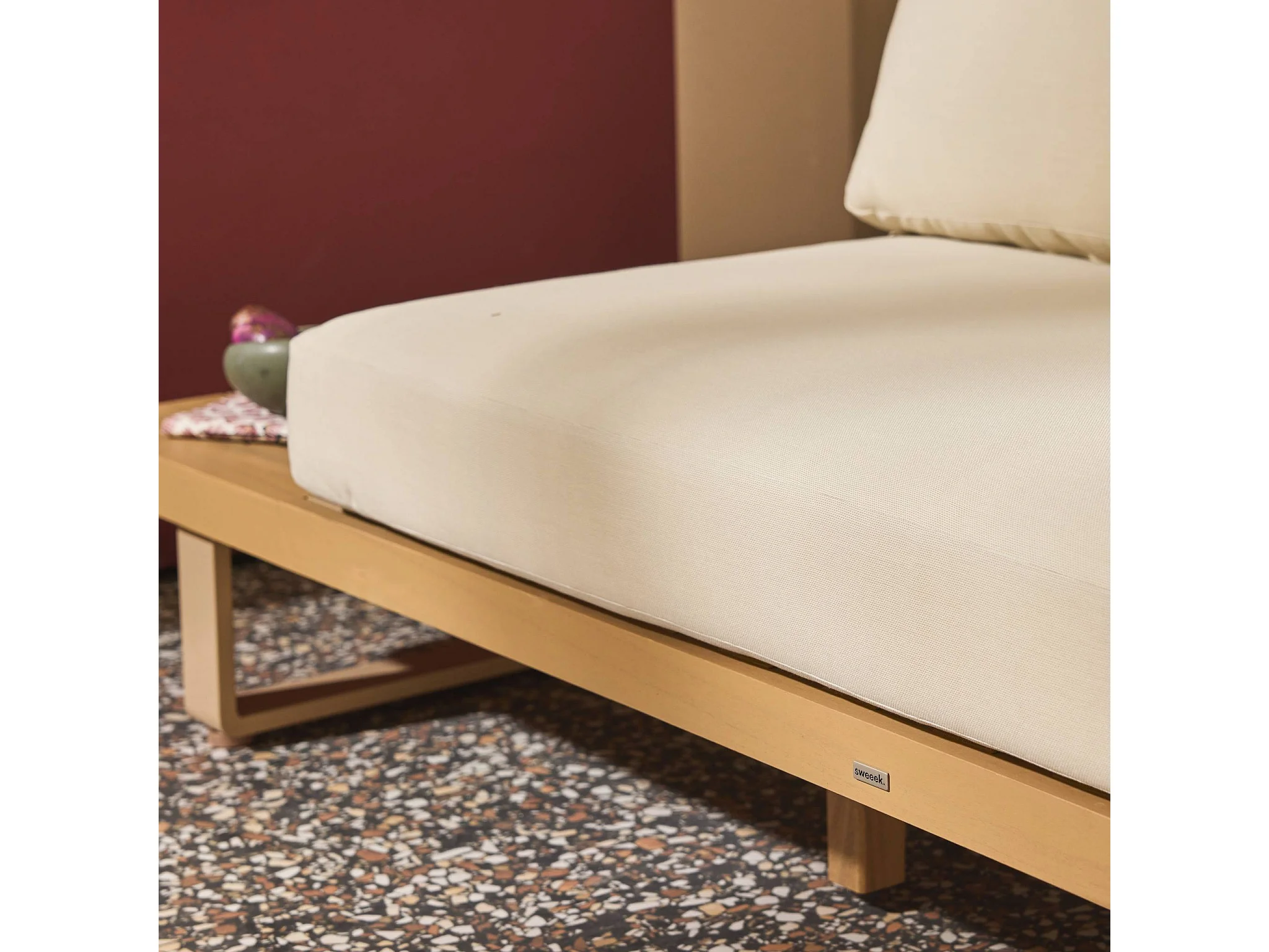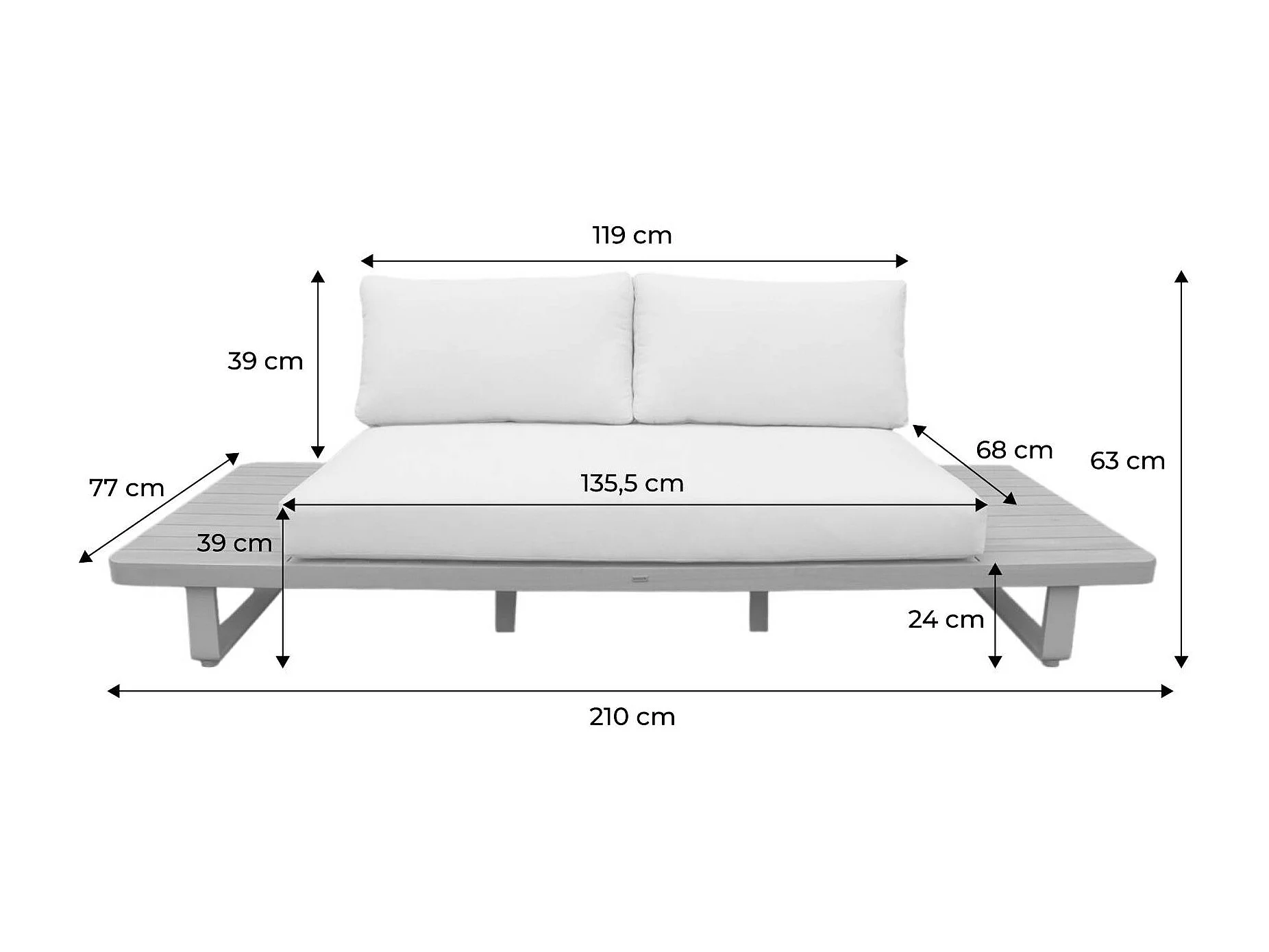Banquette de jardin bois d'acacia et aluminium 2 places beige - Latika