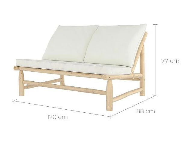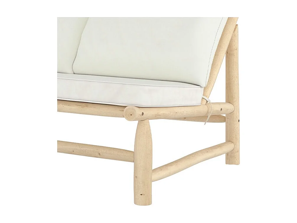 Banquette de jardin 2 places en teck et coussins blanc cassé - Makam