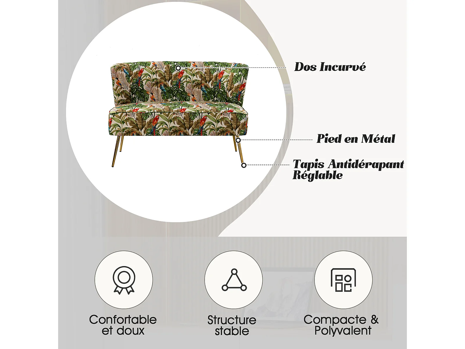 Banquette de Salon, Canapé 2 Places sans Accoudoir Confortable et Rembourré avec Pieds en Métal-VERT