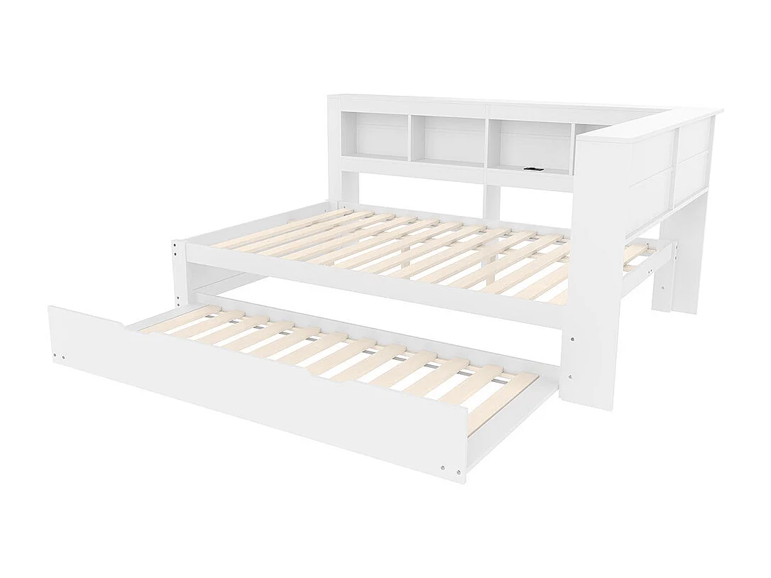 Banquette-lit 140 x 200 cm, canapé-lit, banquette-lit gigogne, blanc
