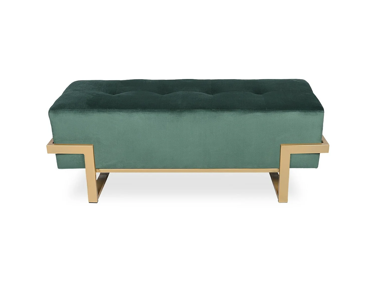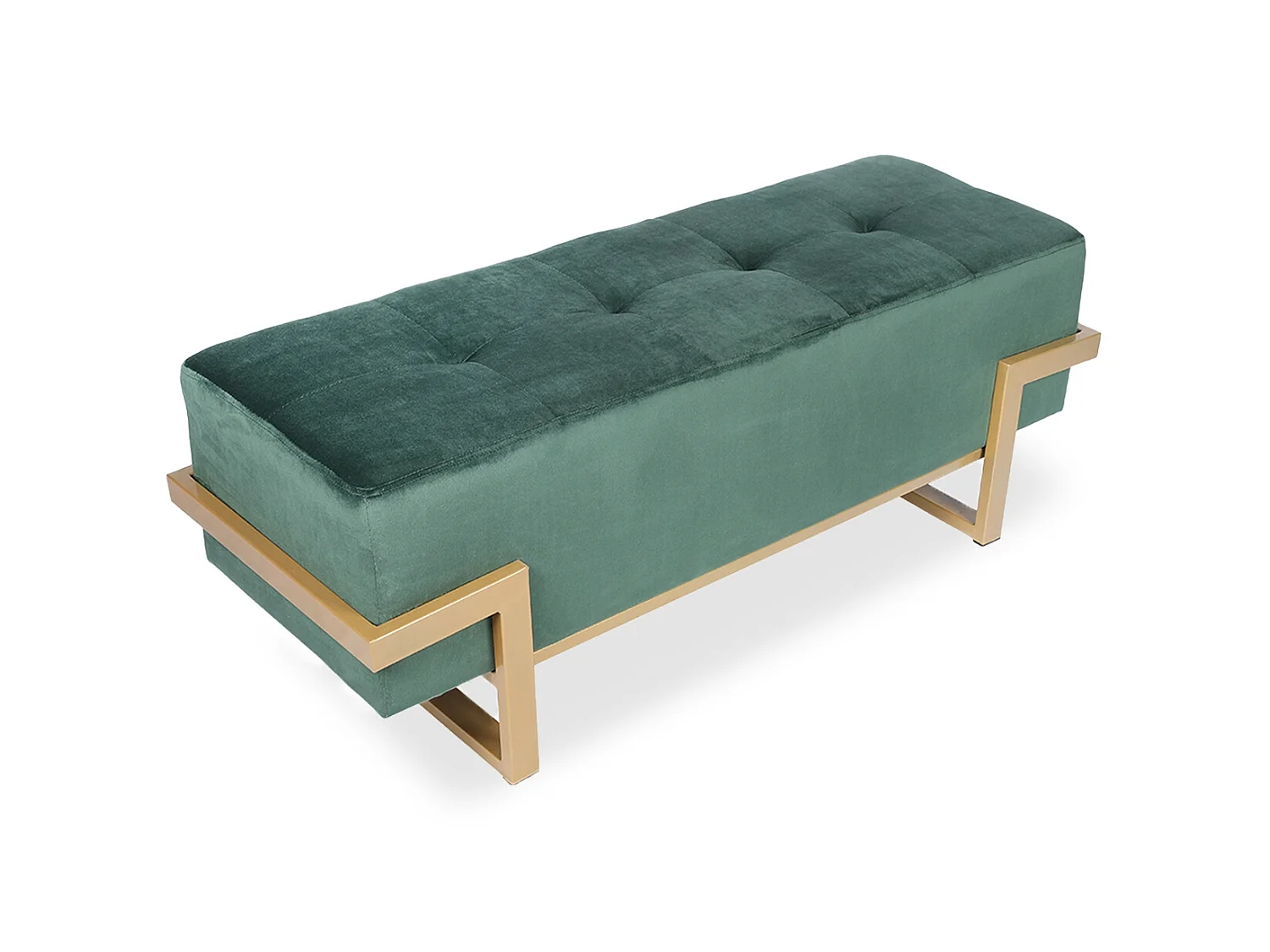 Banc capitonné en velours vert avec pieds dorés en métal PAOLA