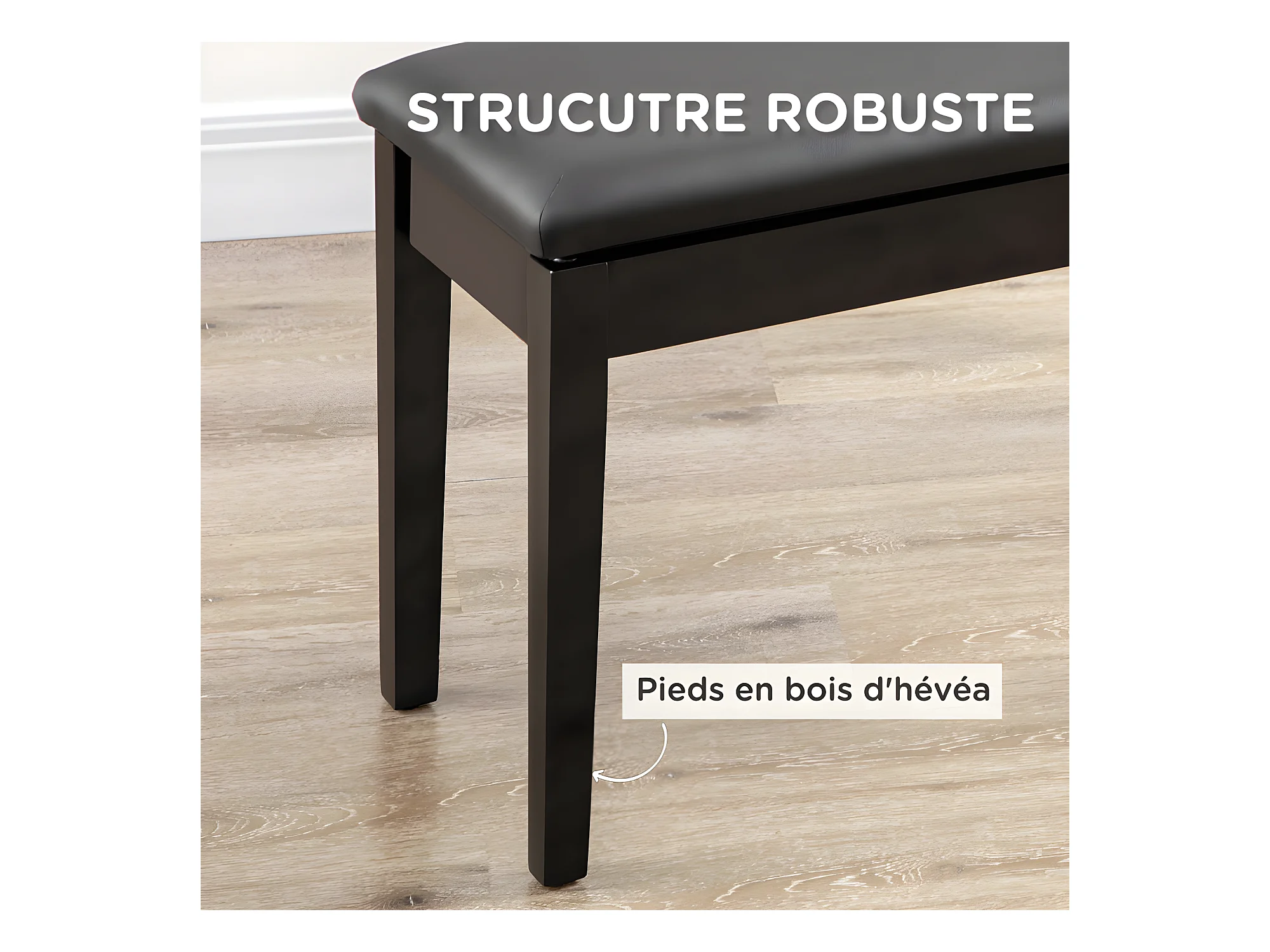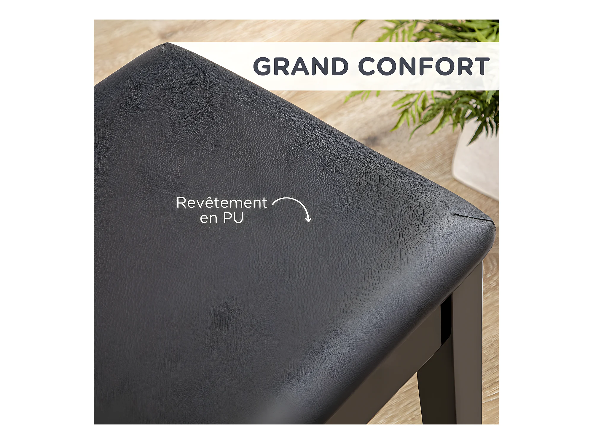 Tabouret Noir aspect Lin et Pieds en Bois naturel 35 x 35 cm