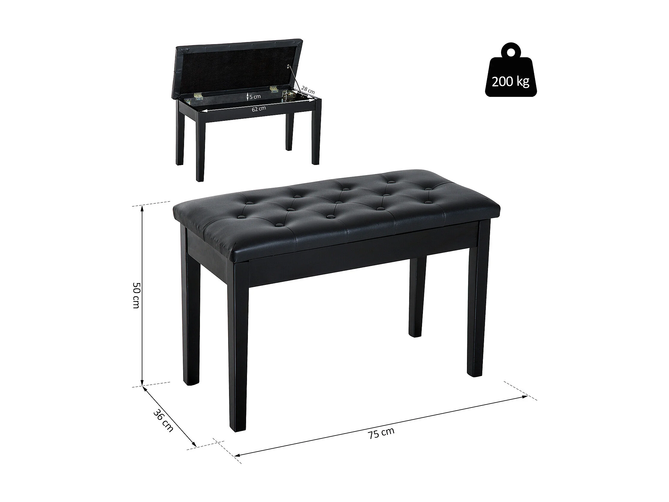 Banquette tabouret siège pour piano avec coffre de rangement pied bois caoutchouc assise capitonnée revêtement synthétique noir