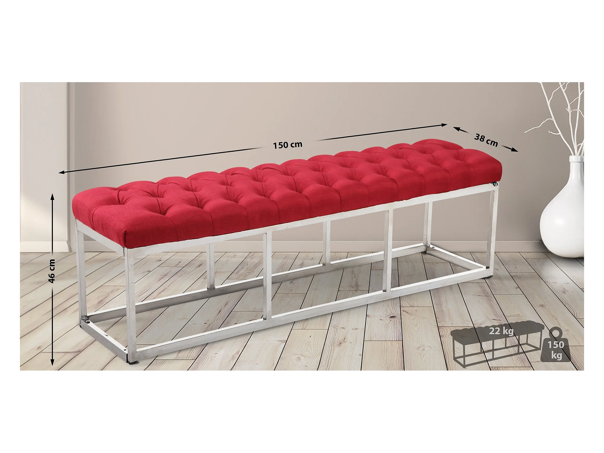 Banquette - Tissu & Acier inoxydable - Rouge - Amun